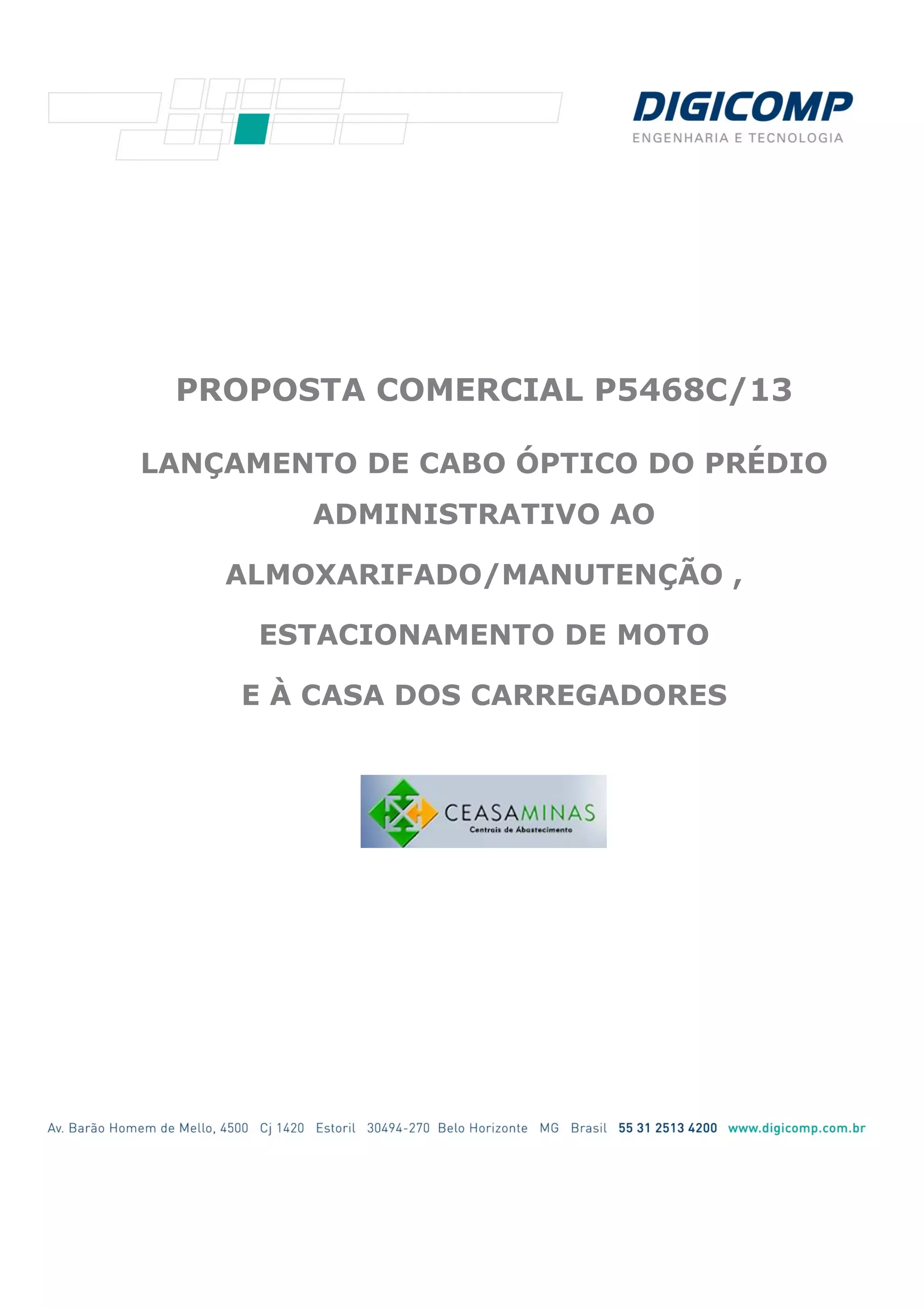 Este documento é uma proposta comercial para lançamento de cabo óptico entre prédios administrativos, almoxarifado, manutenção, estacionamento de motos e casa dos carregadores de uma empresa. A proposta inclui o fornecimento e instalação de cabos ópticos, equipamentos, acessórios e testes para conectar os prédios via fibra óptica.