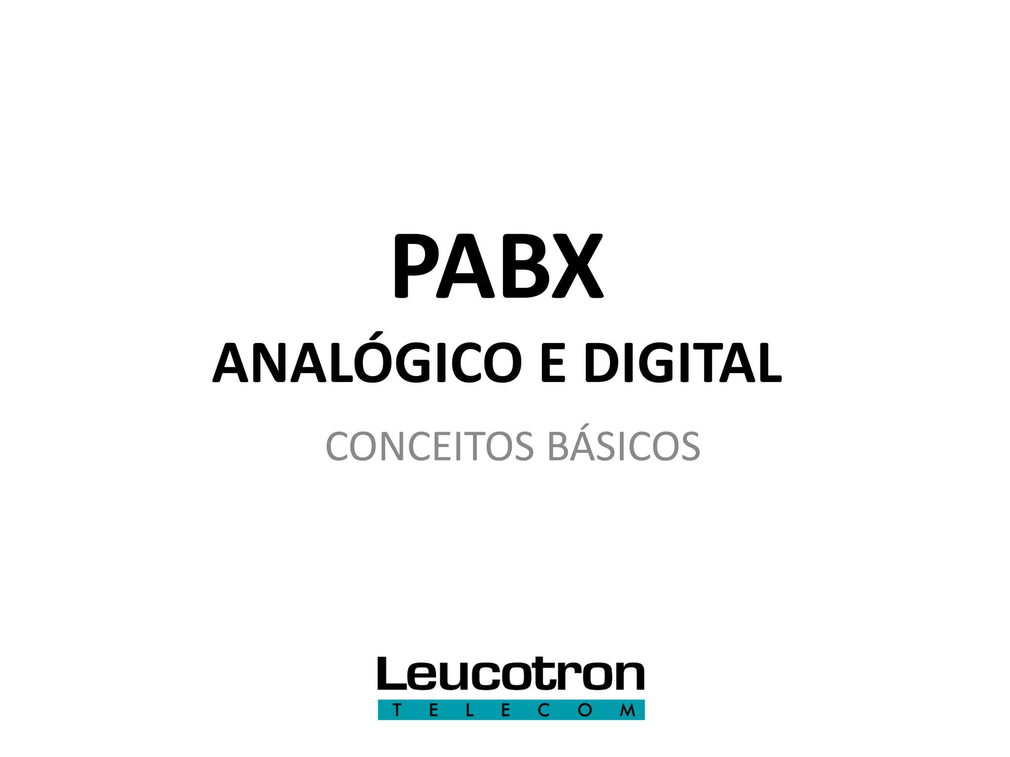 O documento descreve os conceitos básicos de PABX analógico e digital. Um PABX é uma central telefônica privada que permite interconexão automática entre telefones internos de uma empresa e também ligações para linhas externas. Ele fornece funcionalidades como transferência de chamadas, música de espera e DISA. Um PABX digital oferece mais recursos e qualidade em relação a um PABX analógico.