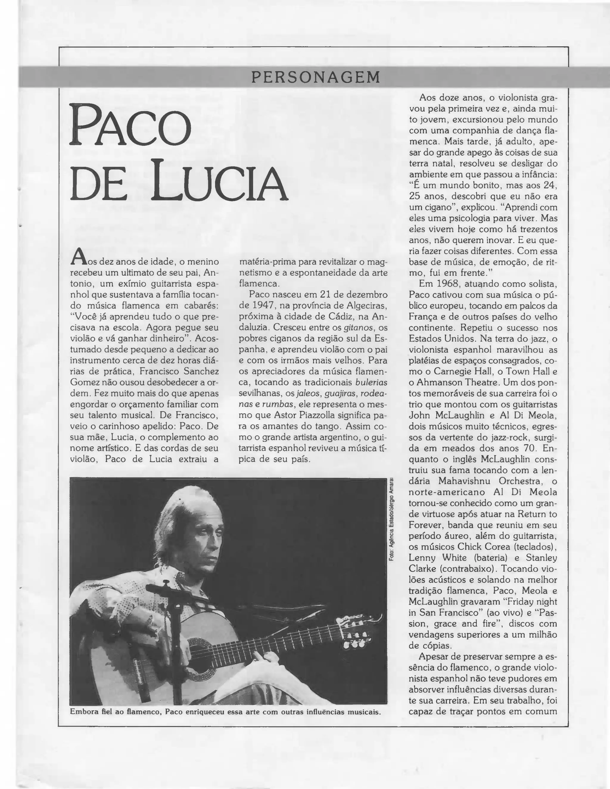 Paço de Lúcia é um virtuoso violonista espanhol de flamenco. Ele reviveu e universalizou essa arte musical, embora tenha preservado sua essência. Apesar de não ter formação erudita, Paço soube absorver influências de outros estilos como o jazz. Sua habilidade técnica o levou a se apresentar com renomados músicos e a gravar discos de grande sucesso.