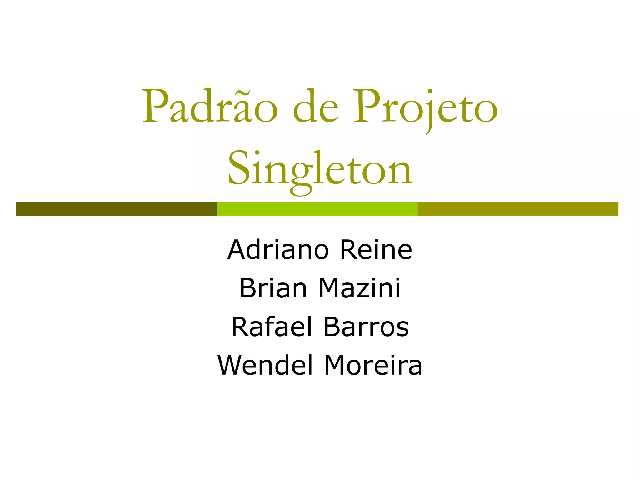 O documento discute o padrão de projeto Singleton, que garante que apenas uma instância de uma classe seja criada. Ele explica que o Singleton é um padrão criacional útil quando objetos como pools de conexão ou registros precisam ser instanciados apenas uma vez. O documento fornece um exemplo de como implementar o padrão Singleton em código, usando um atributo estático e um método getInstance() para retornar a única instância.
