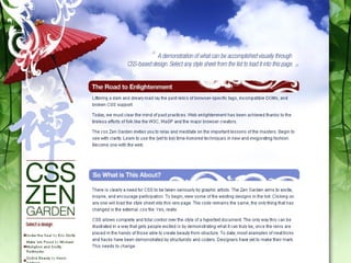 O documento discute padrões da web, incluindo HTML, XHTML e CSS. Ele explica como esses padrões foram criados para facilitar o desenvolvimento web e melhorar a experiência do usuário, e destaca boas práticas como usar HTML de forma semântica e separar conteúdo de apresentação usando folhas de estilo.