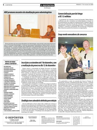 O documento resume notícias locais de Ijuí, no Rio Grande do Sul. Três histórias principais incluem: 1) uma reunião da Associação Brasileira de Odontologia sobre atualizações para dentistas; 2) o anúncio da data para a eleição da nova diretoria do Sindilojas; e 3) o Centro de Referência em Saúde do Trabalhador assinando um termo para cooperar com o município de São Borja.