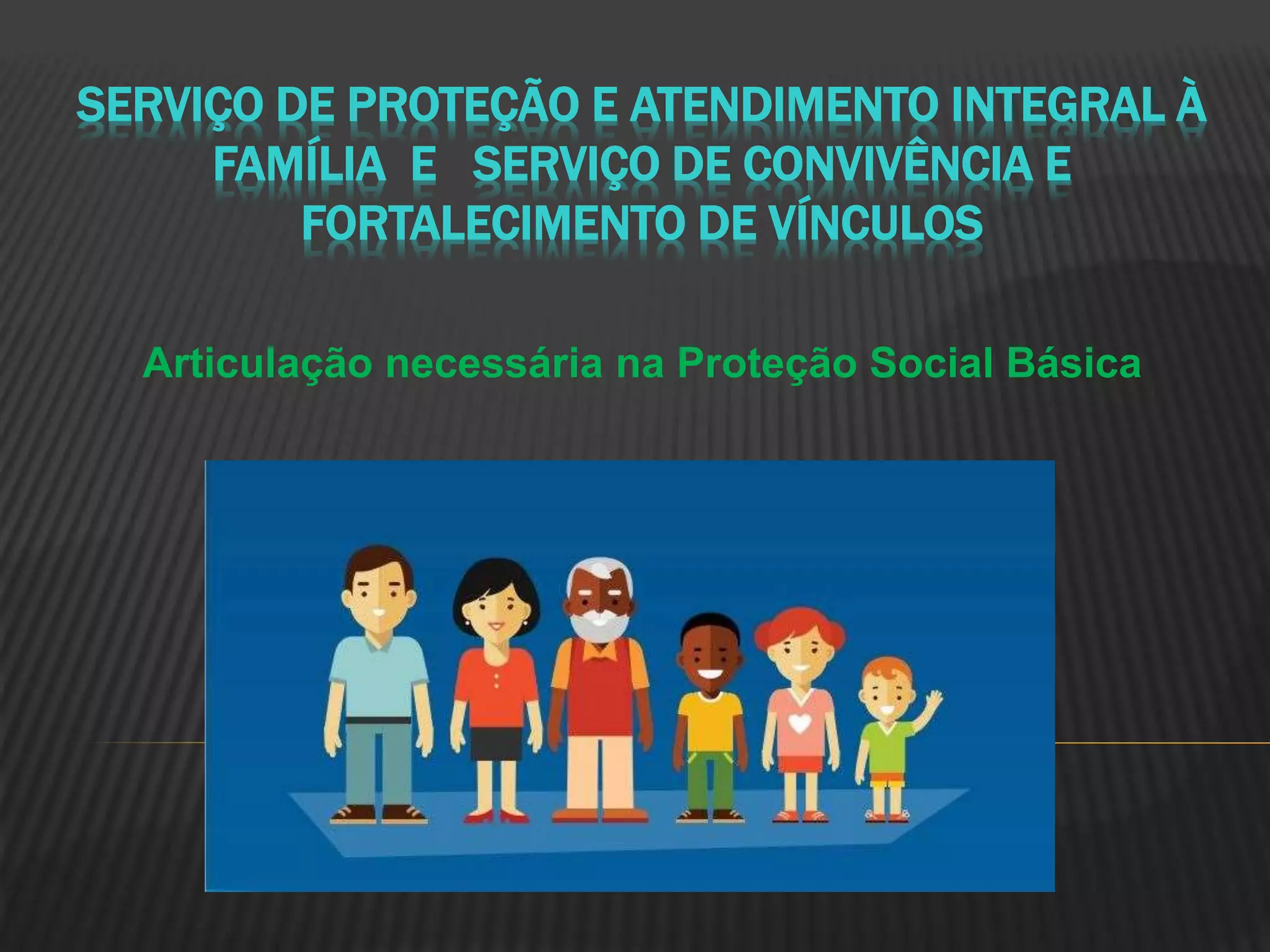 O documento discute a articulação entre o Serviço de Proteção e Atendimento Integral à Família (PAIF) e o Serviço de Convivência e Fortalecimento de Vínculos (SCFV) na proteção social básica. Ele explica que o PAIF oferece atendimento contínuo às famílias enquanto o SCFV reúne usuários em grupos de acordo com faixas etárias para fortalecer vínculos. Também esclarece as diferenças entre oficinas com famílias do PAIF e grupos do