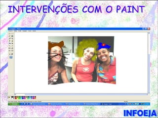 O documento descreve um aplicativo para criação e modificação de figuras, detalhando ferramentas como seleção, borracha, lápis e formas geométricas. Instruções são fornecidas para operações como redimensionamento de imagens, inserção de texto e intervenção em obras de arte. A obra é produzida pela prefeitura de São Bernardo do Campo, com informações sobre a equipe responsável.