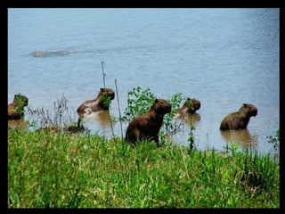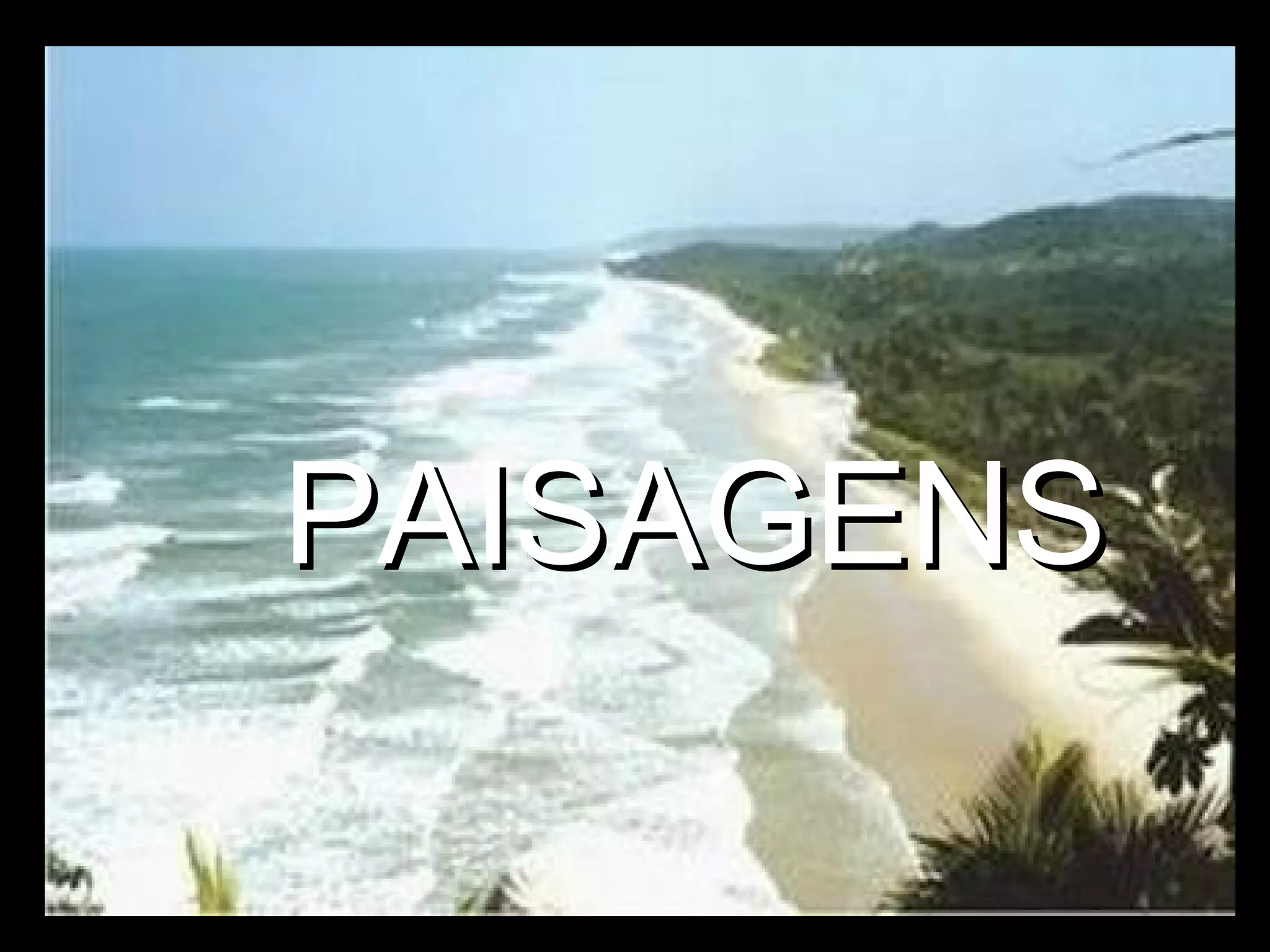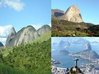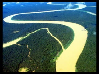Este documento apresenta imagens de diferentes paisagens naturais brasileiras, incluindo rios como o Tietê, São Francisco e da Amazônia, além de regiões como o Pantanal, Floresta Amazônica, dunas e mar.