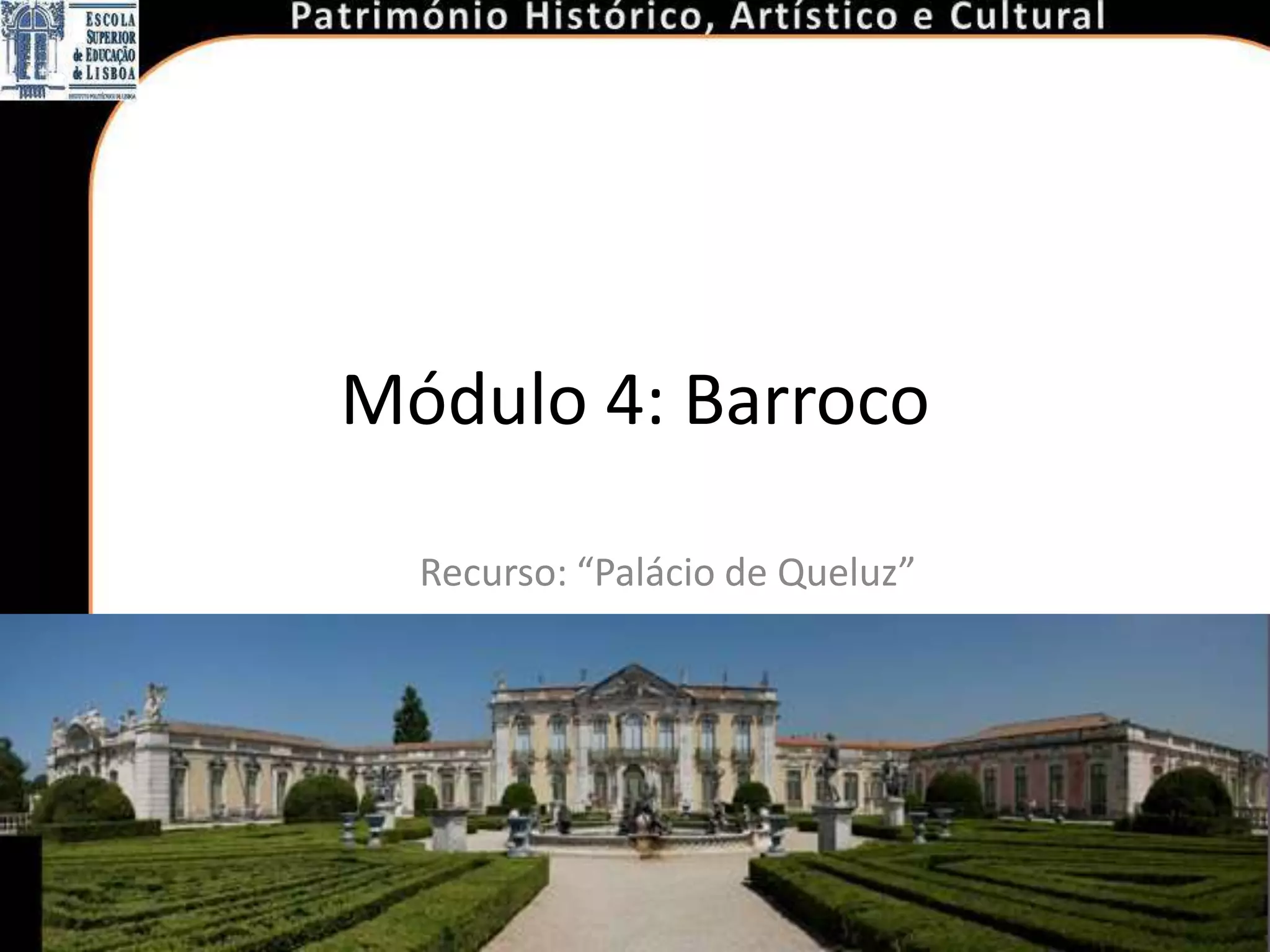 O documento descreve o Palácio de Queluz, incluindo sua localização, história, estilos arquitetônicos, arquitetos responsáveis e principais características das fases de construção e das dependências do palácio e jardins.