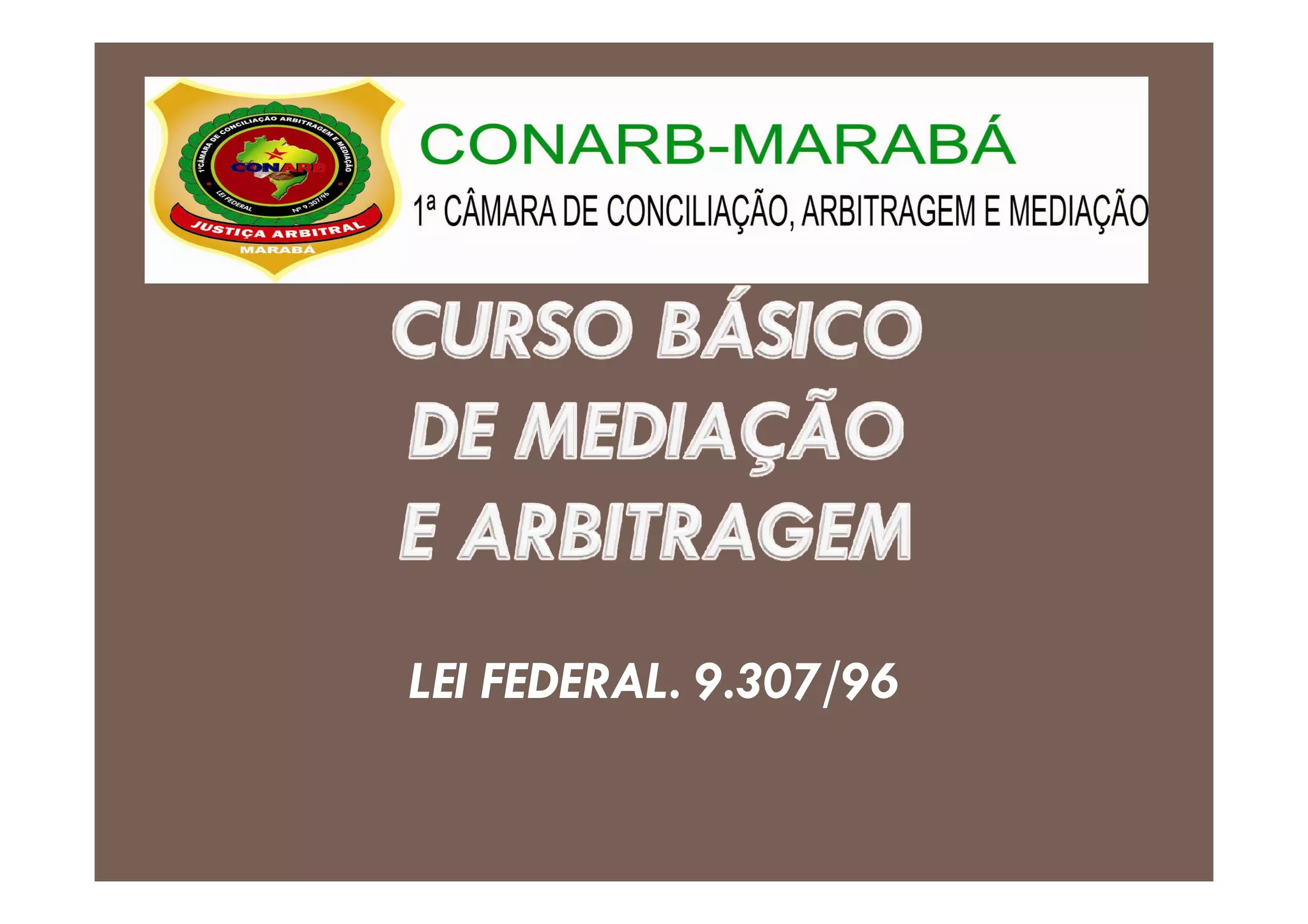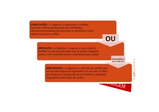 O documento descreve os principais aspectos da Justiça Arbitral no Brasil regulada pela Lei Federal 9.307/96. Em destaque, (1) a Justiça Arbitral é uma forma descentralizada da Justiça para resolver litígios de modo privado evitando ações judiciais; (2) a Lei 9.307/96 regulamenta a Justiça Arbitral no país permitindo que as pessoas resolvam litígios patrimoniais por meio de arbitragem; (3) a cláusula compromissória e o compromisso arbitral permitem que as