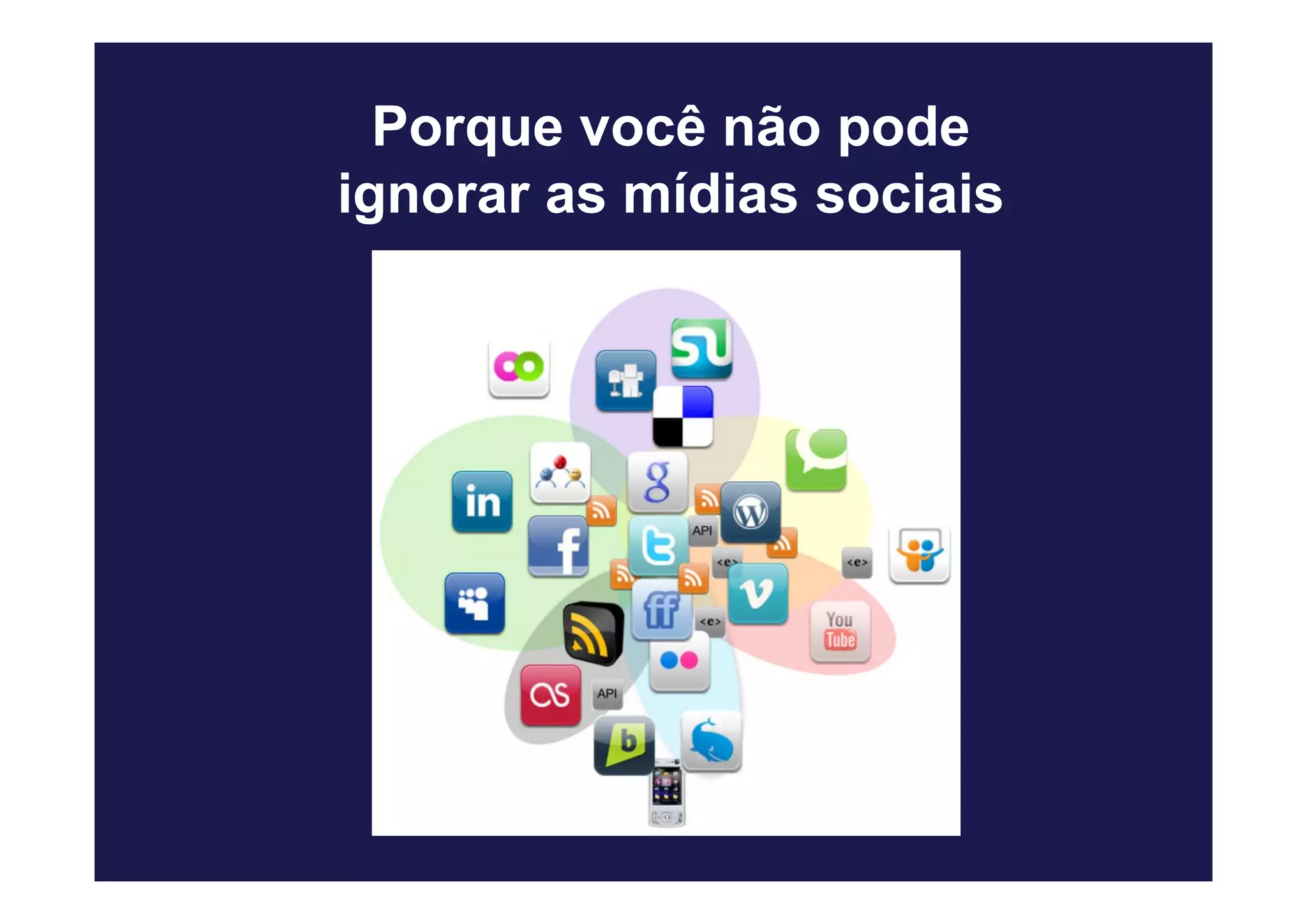 O documento discute o crescimento e importância das mídias sociais na era digital. Ele fornece estatísticas sobre o uso da internet no Brasil e no mundo, destacando que as mídias sociais como o Orkut e YouTube têm milhões de usuários, principalmente jovens, e que empresas devem estar presentes nessas plataformas para se comunicar com o público.