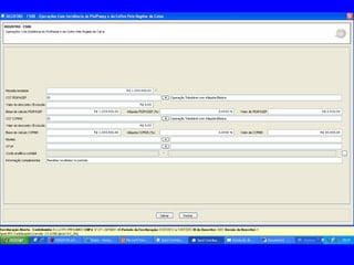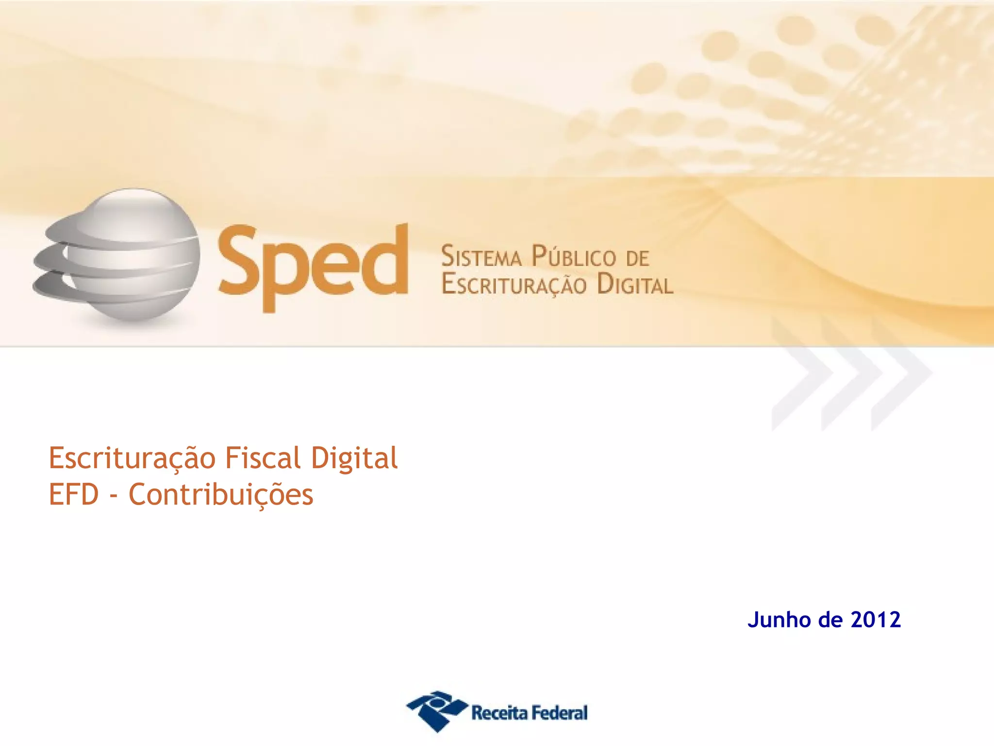 O documento apresenta informações sobre a Escrituração Fiscal Digital de Contribuições (EFD-Contribuições), incluindo o cronograma de entrega, pessoas jurídicas dispensadas, blocos da escrituração digital, apuração da contribuição previdenciária e escrituração detalhada para regimes cumulativo e não-cumulativo.