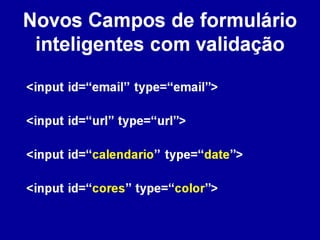 O documento apresenta a atualização HTML 5.0, destacando suas vantagens e características, como acessibilidade em múltiplos dispositivos, multimídia, web semântica e integração com CSS 3. O autor enfatiza a importância de aprender HTML 5 devido à demanda crescente por profissionais qualificados na área. Além disso, menciona recursos como gráficos dinâmicos, geolocalização e a necessidade de adequação nos projetos.
