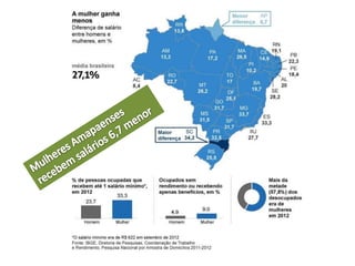 2. Apesar de avanços legais, estudos mostram que a cultura patriarcal e a violência contra a mulher ainda são problemas graves no Brasil, com altas taxas de homicídios e salários menores para as mulheres.
