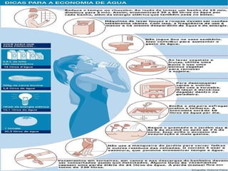O documento discute o aquecimento global, suas causas e consequências, incluindo o derretimento de geleiras, aumento do nível do mar e eventos climáticos extremos. Também aborda os impactos da poluição da água e do desmatamento na Mata Atlântica, com espécies ameaçadas de extinção.