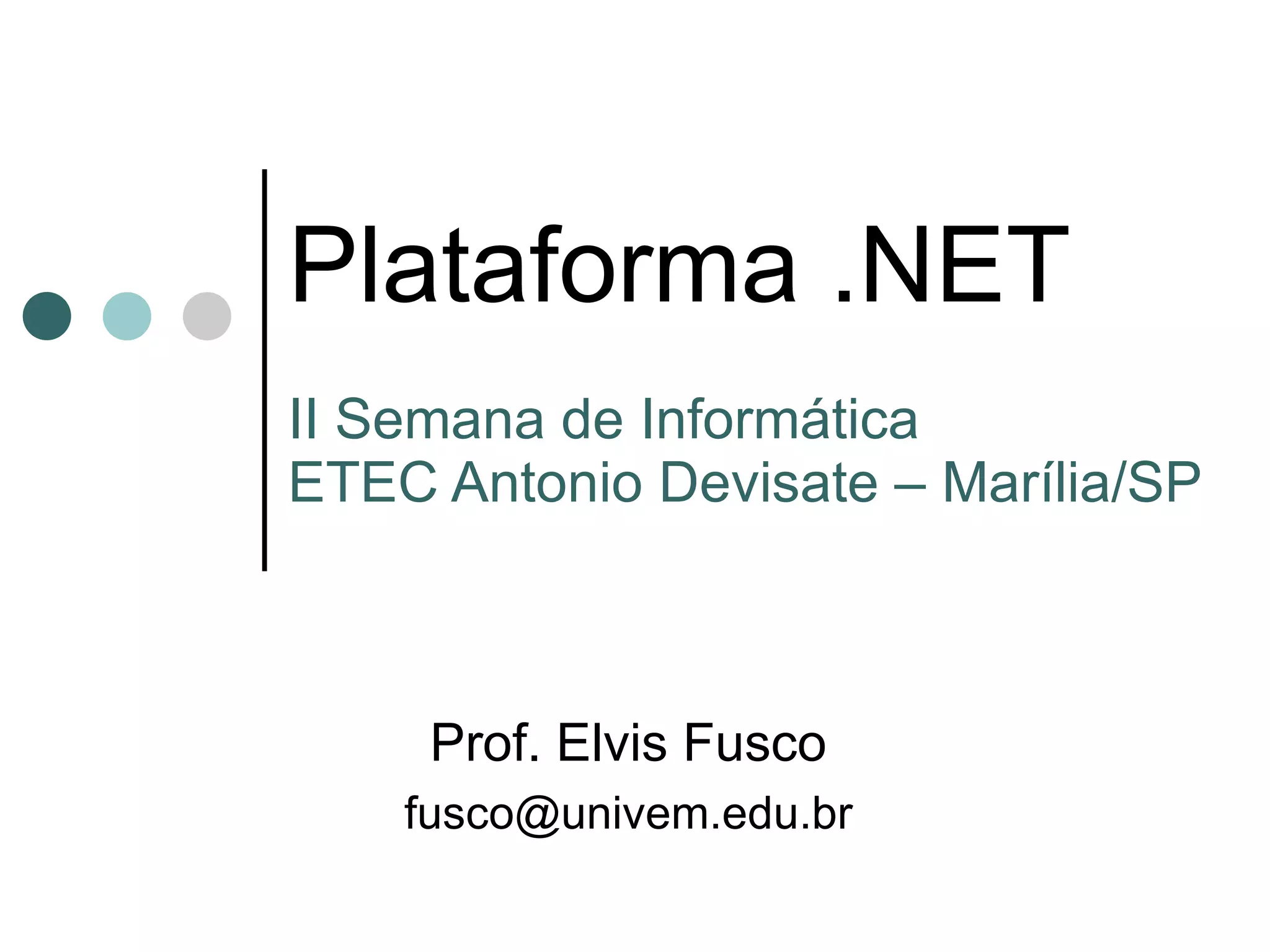 O documento fornece um resumo sobre a plataforma .NET, descrevendo seu objetivo de usar um modelo baseado em componentes, seu framework e classes, linguagens suportadas e aplicações como Windows Forms e ASP.NET.