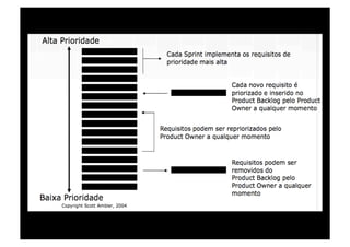 3) Os papéis e práticas do Scrum como Sprints, Daily Scrum e Retrospectivas.
