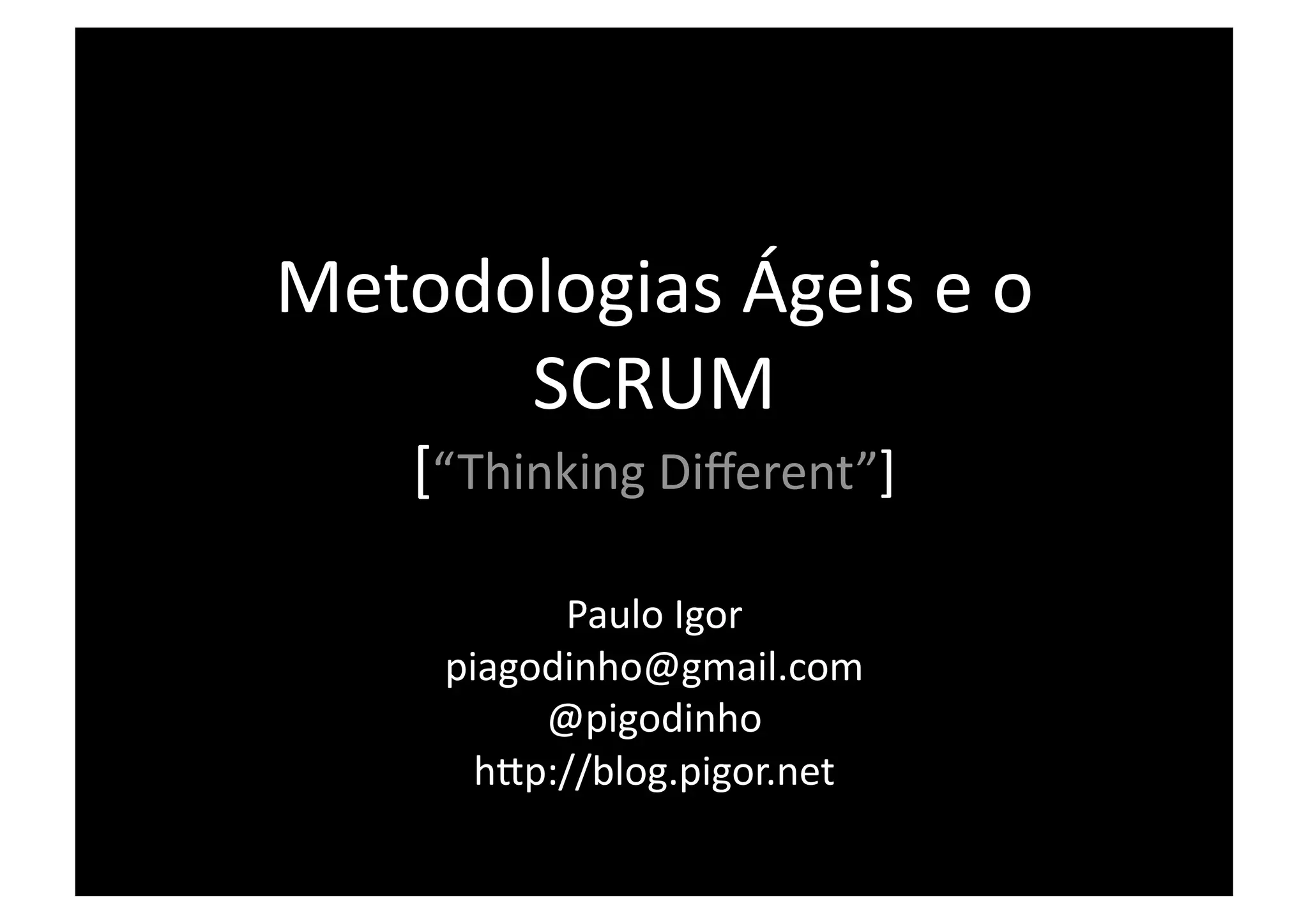 O documento apresenta uma introdução ao Scrum e metodologias ágeis, descrevendo: