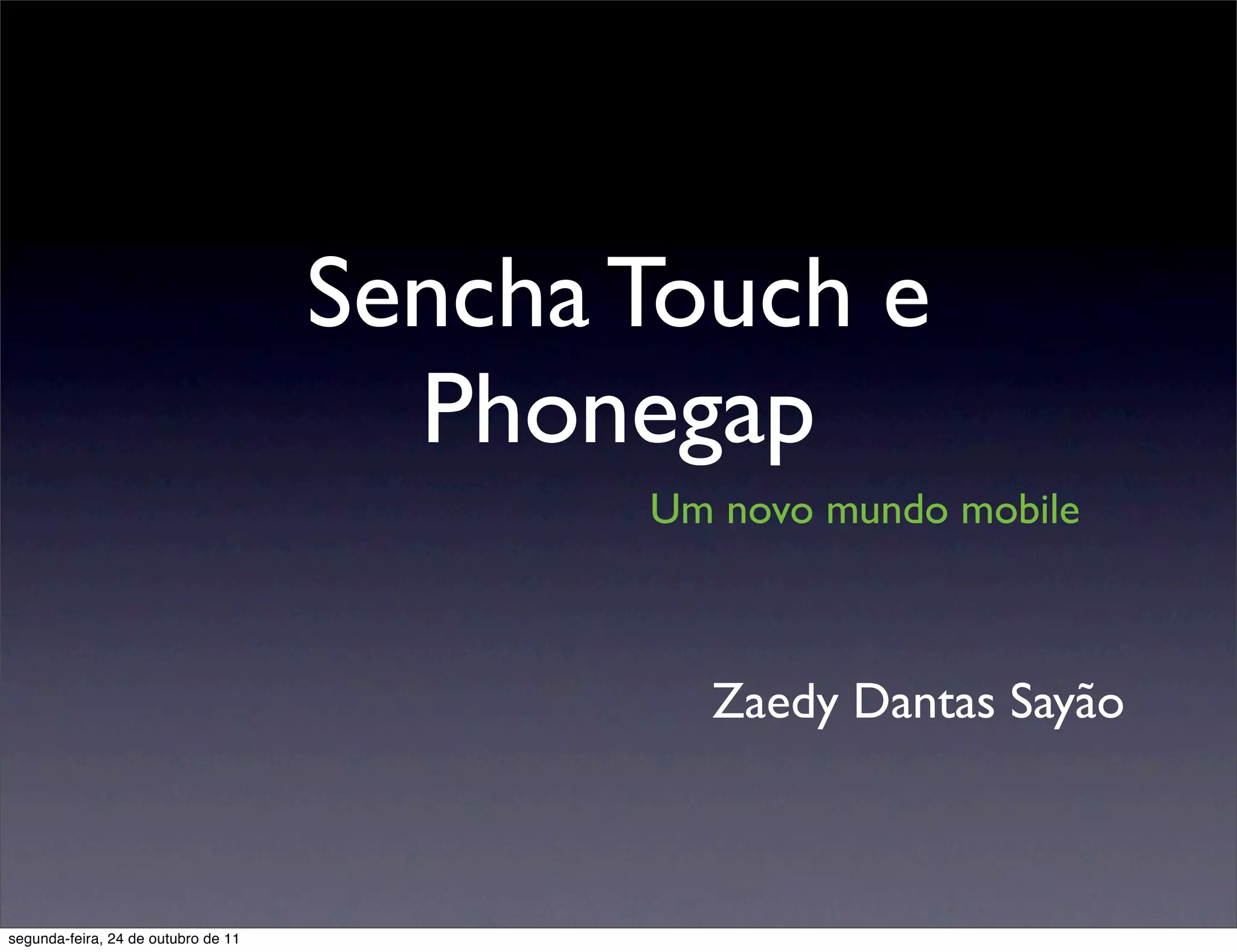 O documento discute o framework Sencha Touch e o Phonegap. Ele explica que o Sencha Touch permite desenvolver aplicativos móveis ricos utilizando HTML5, CSS e JavaScript, enquanto o Phonegap empacota esses aplicativos para que possam ser distribuídos em diferentes plataformas móveis. O documento também lista alguns dos componentes e recursos disponíveis no Sencha Touch.