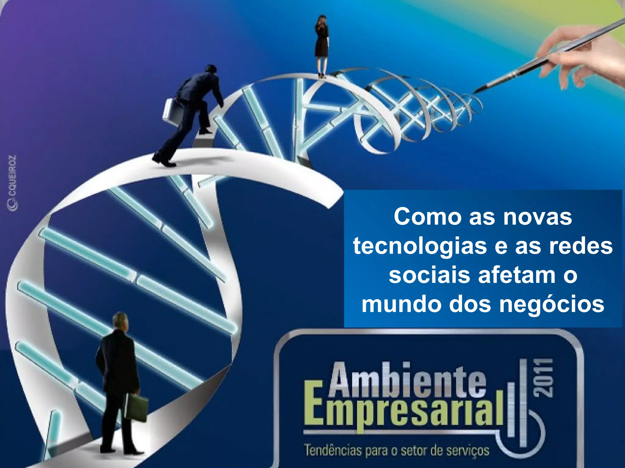O documento discute como as novas tecnologias e mídias sociais afetam os negócios. Aborda a história da Internet, seu crescimento e números atuais, além das principais redes sociais e como empresas têm utilizado essas plataformas para fortalecer suas marcas e se comunicar com clientes. Apresenta também casos de sucesso e erros na adoção das mídias sociais por diferentes empresas.