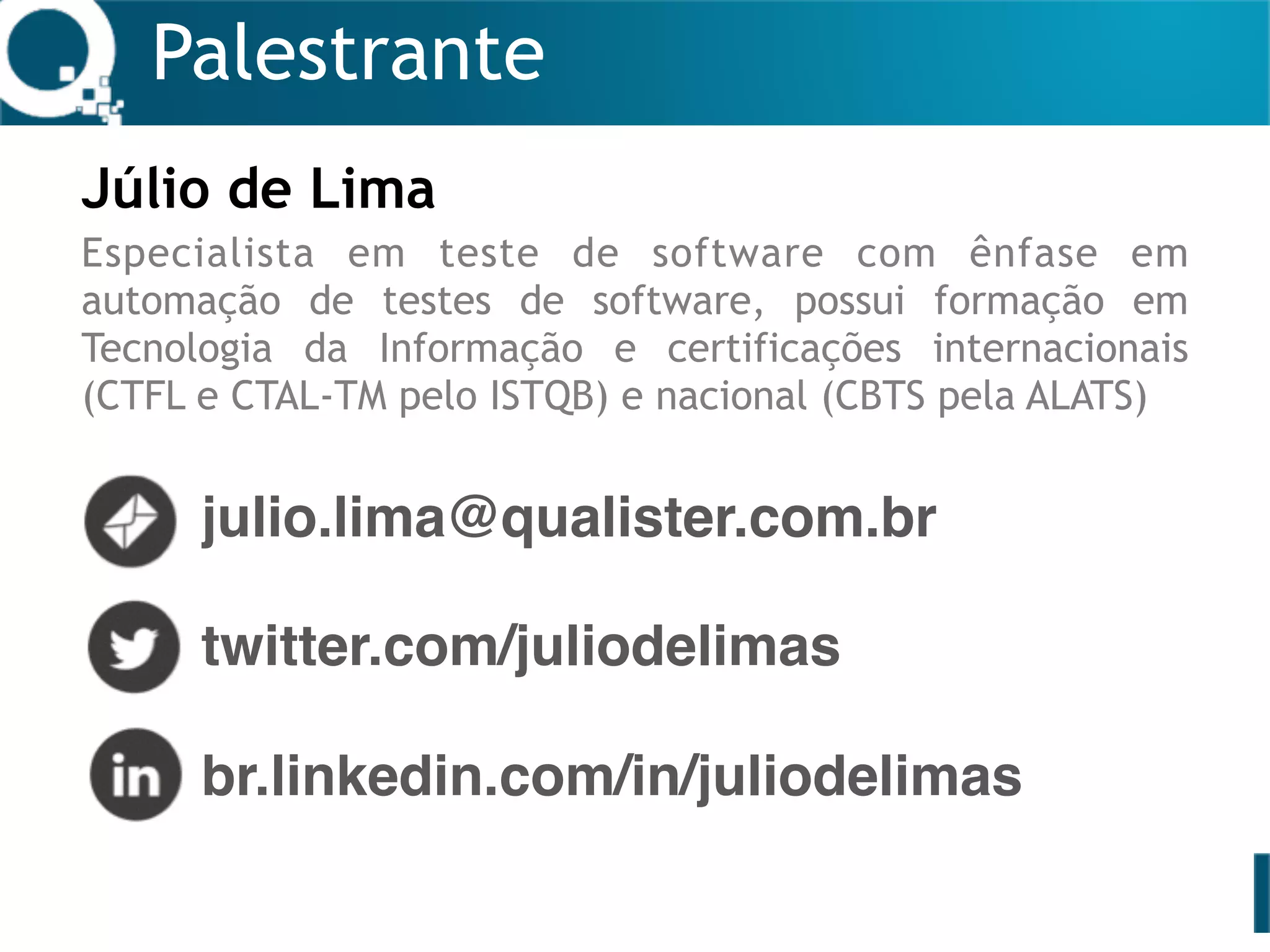 O documento apresenta a Qualister, uma empresa especializada em testes de software e automação, que oferece cursos e consultoria desde 2007. Ele discute também a arquitetura REST e como testar APIs usando ferramentas como Curl e Rest-Assured, incluindo exemplos e validações de resposta. Além disso, menciona o uso do Maven e JUnit para facilitar a estruturação e execução de testes automatizados.
