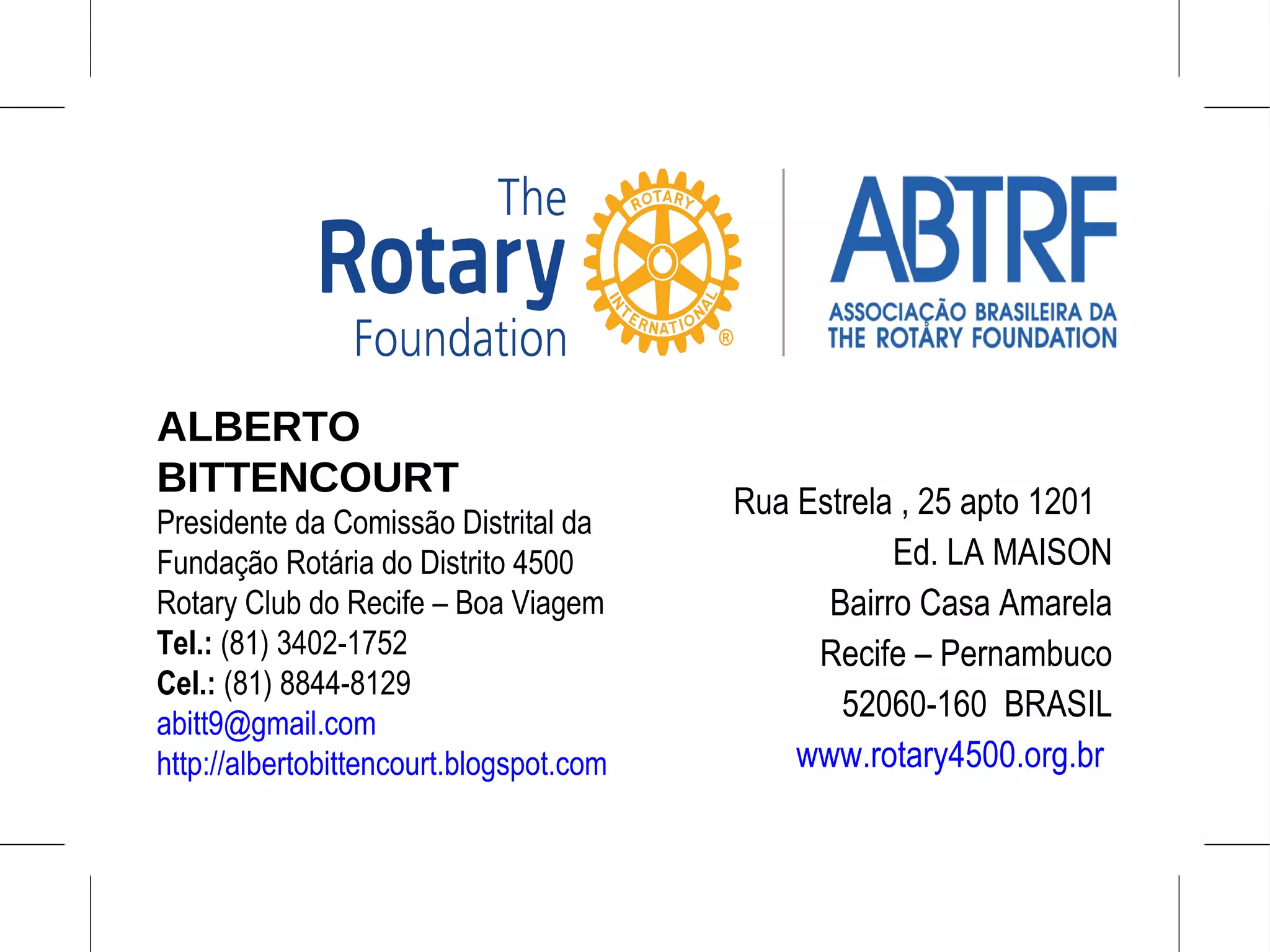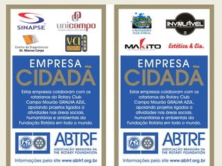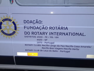 O documento descreve um projeto de parceria entre clubes rotários e outras organizações para doar um veículo, cadeiras e equipamentos de armazenamento para a Fundação Hemope. O orçamento total do projeto é de R$160.000,00, que será financiado por doações dos clubes rotários envolvidos, parcerias com outras empresas e doações dos Distritos 4500, 4420 e 1970 da Fundação Rotária.