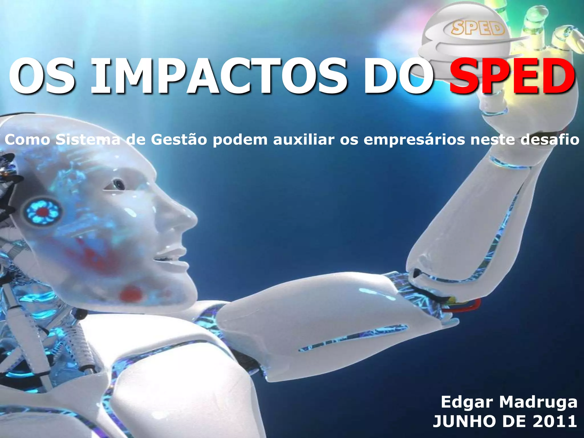 O documento discute os impactos do Sistema Público de Escrituração Digital (SPED) na gestão empresarial, enfatizando a importância da certificação digital e a evolução dos arquivos digitais. Apresenta a estrutura do SPED, os seus benefícios e obrigações para os contribuintes, além de frisar a necessidade de adaptação das empresas a essa nova realidade de fiscalização e gestão fiscal. O objetivo da palestra é proporcionar conhecimento sobre o SPED, suas implicações e riscos tributários.