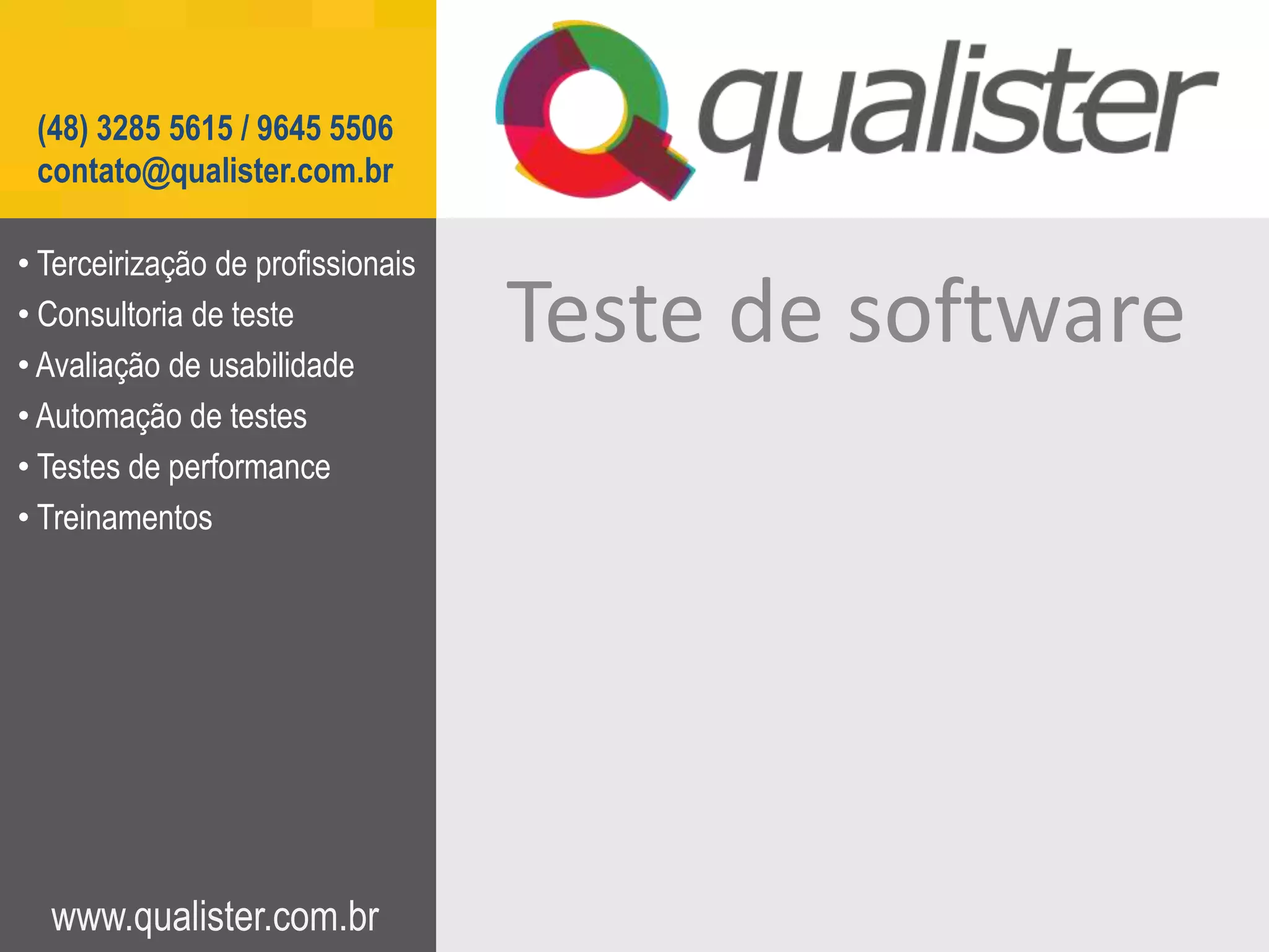 A Qualister é uma empresa de testes e qualidade de software localizada em Florianópolis que oferece serviços como terceirização de profissionais de teste, consultoria, treinamentos e automação de testes. A apresentação fornece detalhes sobre os serviços, clientes, parceiros, equipe e especialistas da Qualister.