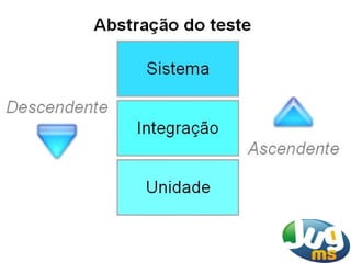O documento discute a importância dos testes de unidade e apresenta a ferramenta JUnit para automatizar testes de unidade. Ele também fornece boas e más práticas para escrever testes de unidade e cobre tópicos como as anotações @Test, @Before, @After e @Rule do JUnit.