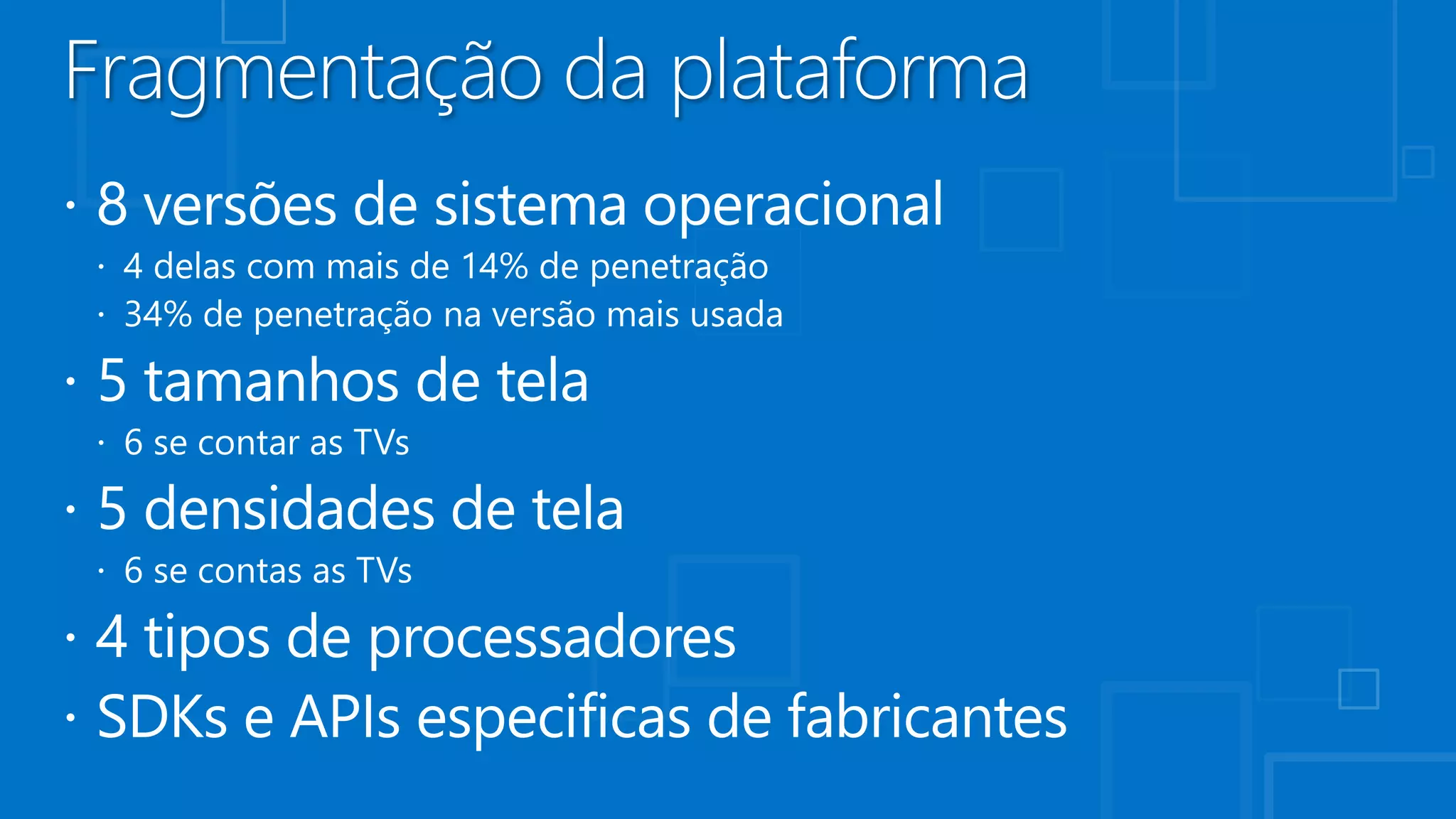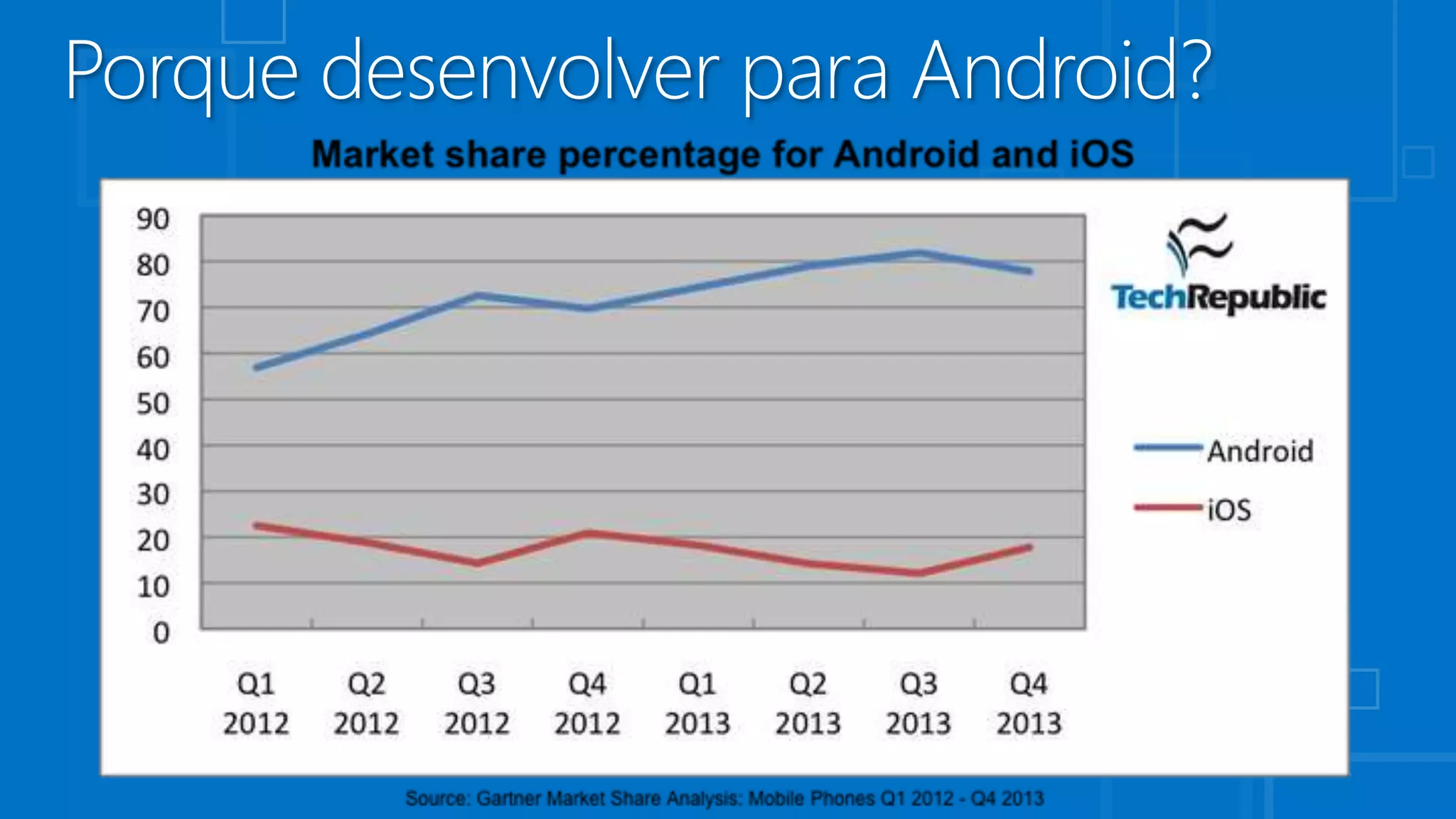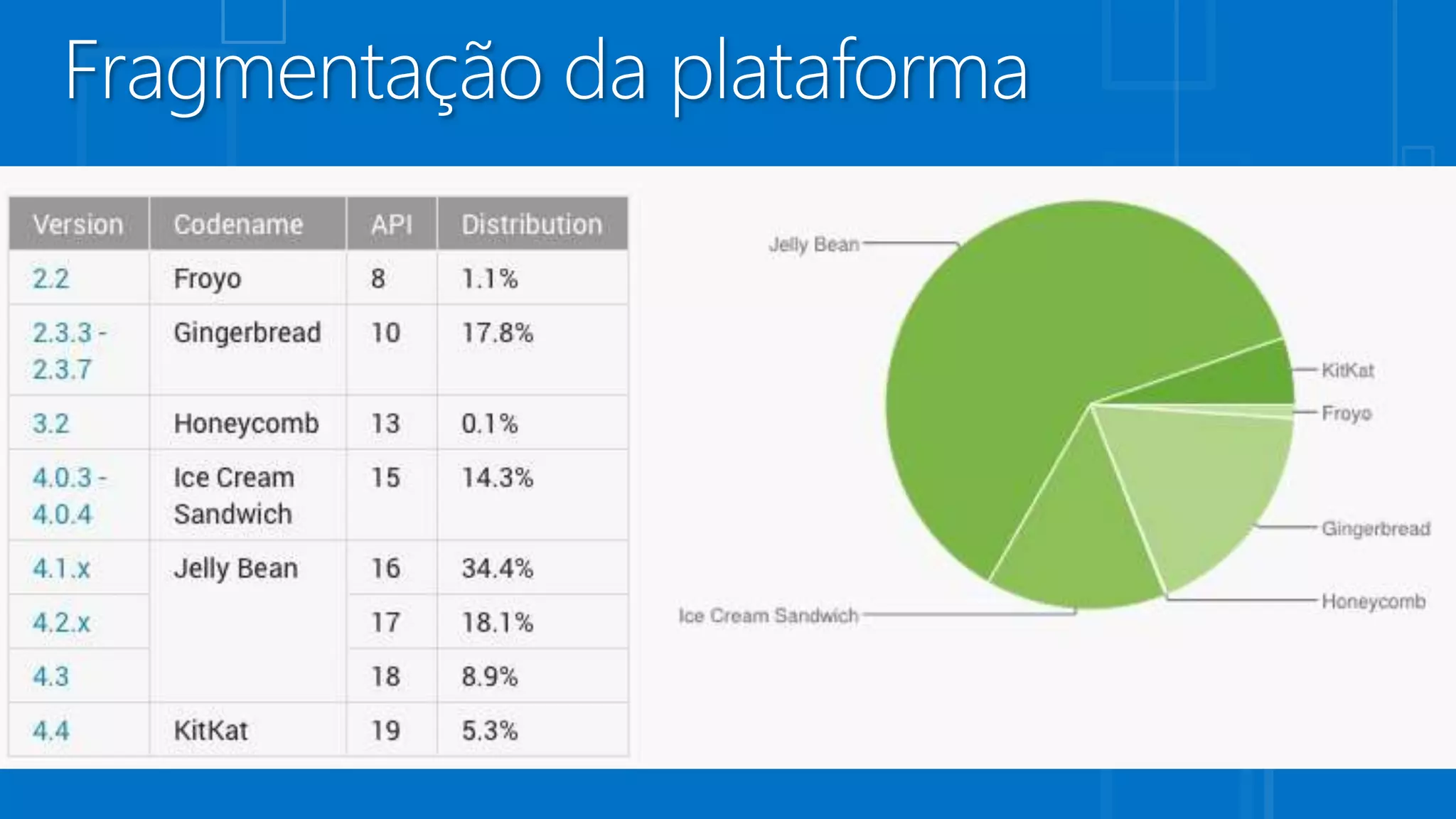 Android é uma plataforma móvel popular. Este documento discute como começar a desenvolver aplicativos para Android, incluindo mostrar código de exemplo.