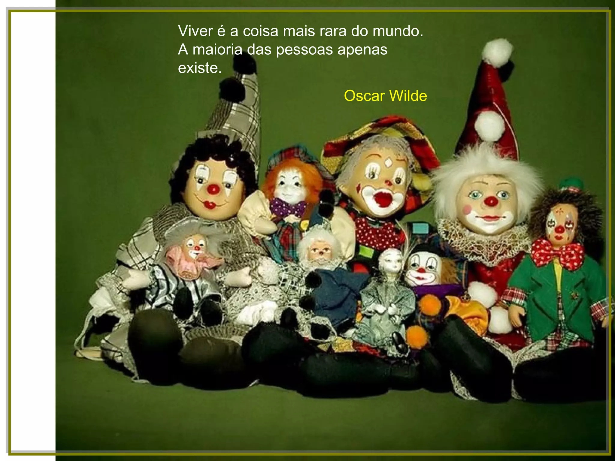 Este documento contém várias citações sobre a vida, o caráter, as oportunidades e as escolhas das pessoas. As citações discutem a importância de viver plenamente, aprender com os erros, persistir nos objetivos e valorizar a virtude acima da aparência.