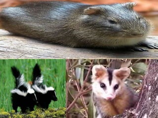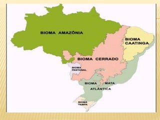 O documento descreve a região do Pampa no sul do Brasil, Uruguai e Argentina. É uma planície com vegetação herbácea baixa e clima subtropical com invernos frios. Abriga grande biodiversidade de espécies animais e vegetais, incluindo mamíferos como gambás e aves como pombos e perdizes.