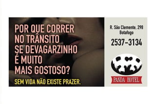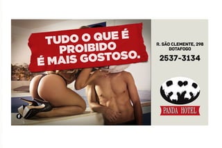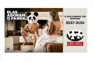 A campanha publicitária de um motel usava uma modelo ao lado de um homem com máscara de panda para promover o conceito de que "elas adoram o panda". A campanha gerou polêmica por suposta sexualização prematura e foi autuada pelo Ministério Público. No entanto, a agência e cliente ajustaram a campanha de forma criativa e humorada, mantendo o conceito original e gerando grande exposição para o motel.