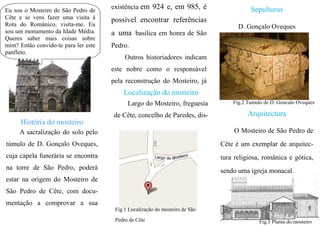 O Mosteiro de São Pedro de Cête é um monumento da Idade Média localizado em Paredes. Possui uma arquitetura românica e gótica notável, com destaque para a profundidade da nave e a capela-mor. Guarda ainda vestígios de pinturas murais do século XVI e o túmulo do nobre D. Gonçalo Oveques, possivelmente ligado à fundação do mosteiro no século X.