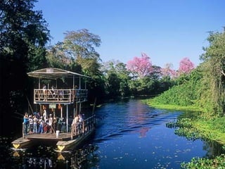 O Pantanal é a maior área alagada do mundo, localizada principalmente nos estados brasileiros de Mato Grosso e Mato Grosso do Sul, cobrindo cerca de 250.000 km2 durante a estação chuvosa e abrigando a mais rica coleção de fauna e flora aquáticas do planeta, tornando-o o ecossistema mais denso do mundo.