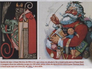 O documento discute a substituição de Jesus Cristo pelo Papai Noel no coração e mente das pessoas. Afirma que o Papai Noel foi criado como uma falsificação de Cristo por Satanás, para desviar a atenção e amor das crianças de Jesus. Também compara atributos de Cristo com os do Papai Noel para mostrar como eles foram propositadamente colocados no Papai Noel.