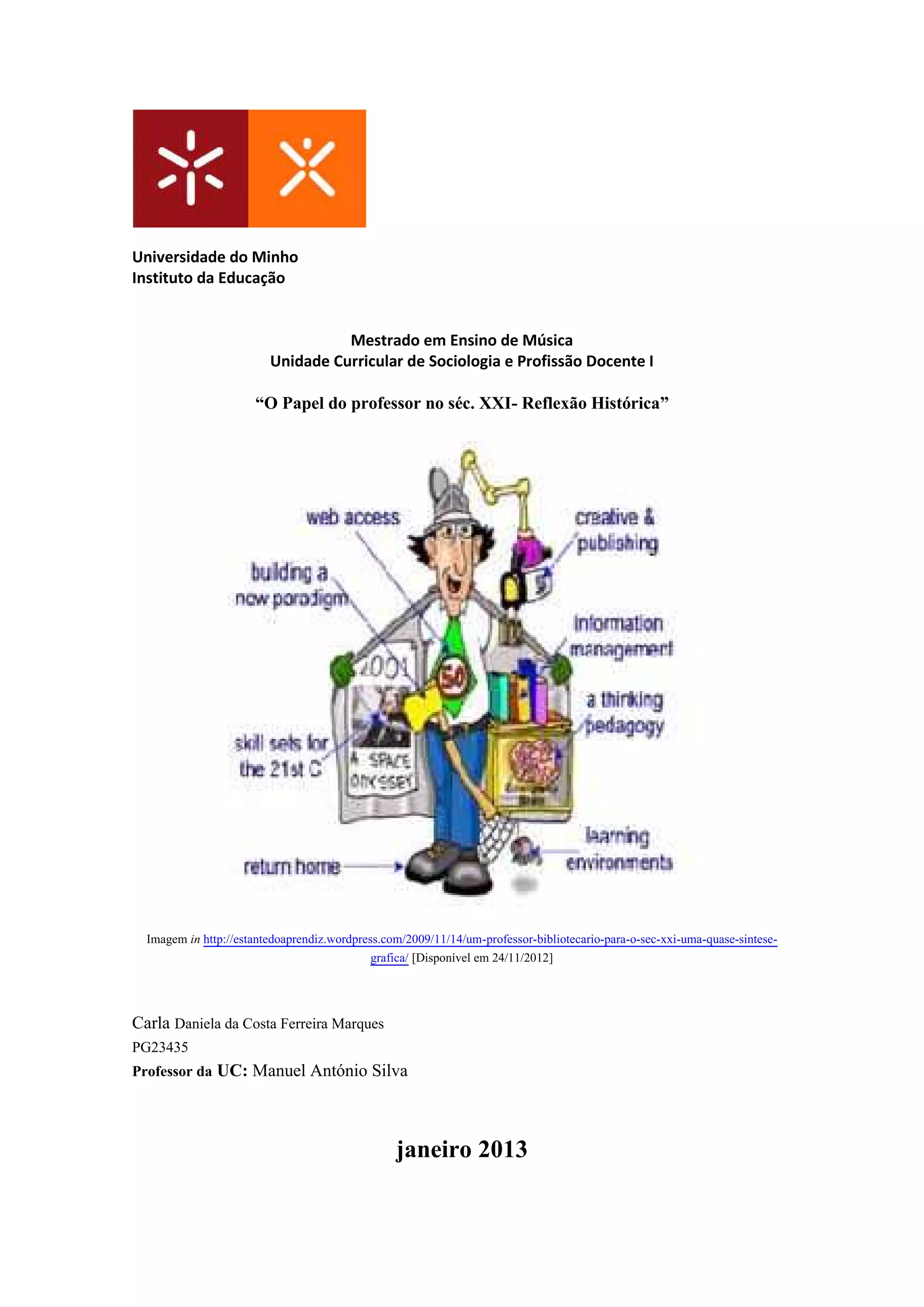 Este documento discute o papel do professor no século XXI com base em um texto de 1989 de António Nóvoa. Refere que Nóvoa questiona o papel do professor na sociedade em transição do século XIX para o XX e caminhos para o futuro. Também discute competências necessárias para professores identificadas por Philippe Perrenoud, como prática reflexiva. Conclui questionando se os professores atualmente estão melhor preparados e reconhecidos do que no passado.
