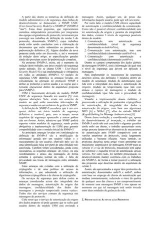 2. Os protocolos propõem a geração e troca criptográfica de chaves de autenticação entre as entidades do SNMP, de modo que cada mensagem utilize uma chave diferente, reduzindo o risco em caso de comprometimento de uma chave.