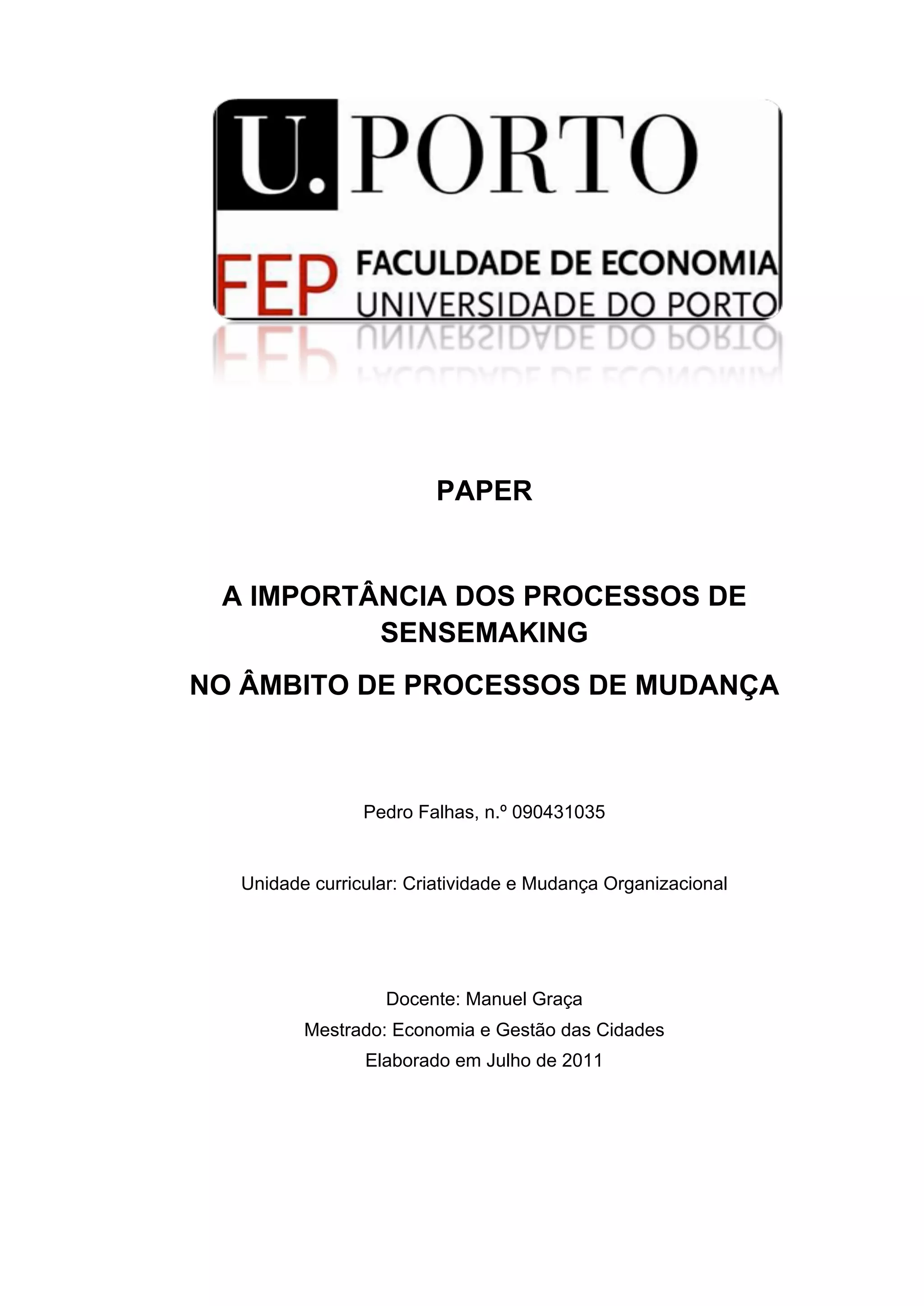 3) O documento argumenta que a mudança em instituições tradicionais pode ser facilitada por uma abordagem combinada de mudança planeada e processos de sensemaking, dando sentido aos sinais de mudança entre