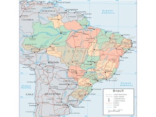 O documento discute os conceitos e métodos de projeções cartográficas. As projeções mapeiam a superfície curva da Terra em uma superfície plana de forma aproximada, preservando algumas características enquanto deformam outras. Elas são classificadas de acordo com o tipo de superfície, grau de deformação e método de projeção. As projeções de Mercator, Peters e Azimutal são frequentemente cobradas no ENEM.