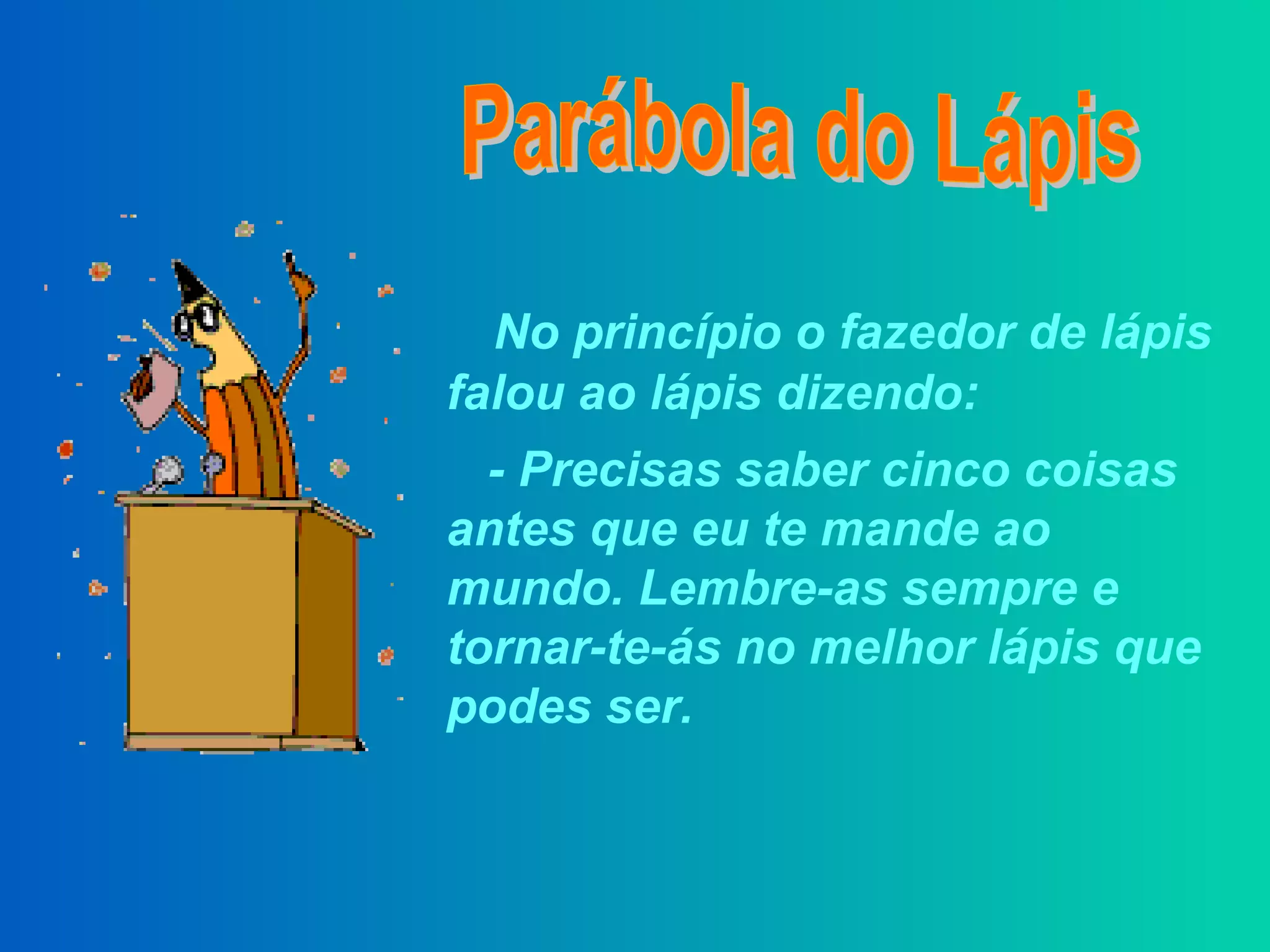 A parábola do lápis ensina cinco lições para alcançar o seu potencial máximo: 1) Permitir-se ser guiado por outra pessoa; 2) Aprender com os cortes dolorosos da vida; 3) Corrigir erros e melhorar continuamente; 4) Manter o foco no que está dentro de si; 5) Continuar escrevendo sob qualquer condição. Essas lições também se aplicam aos seres humanos para se tornarem as melhores pessoas possíveis com a ajuda de Deus.