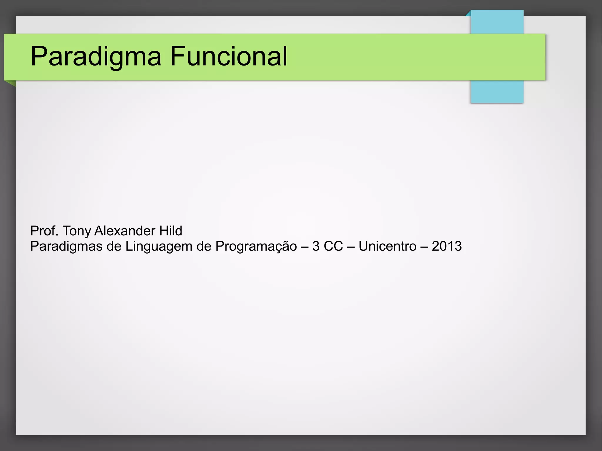 O documento discute o paradigma funcional de programação e linguagens funcionais. Ele apresenta os problemas da crise do software e como as linguagens funcionais podem ajudar a resolvê-los, permitindo programas mais claros, concisos e seguros. Em seguida, explica os conceitos-chave de programação funcional e fornece exemplos nas linguagens Haskell e Lisp.