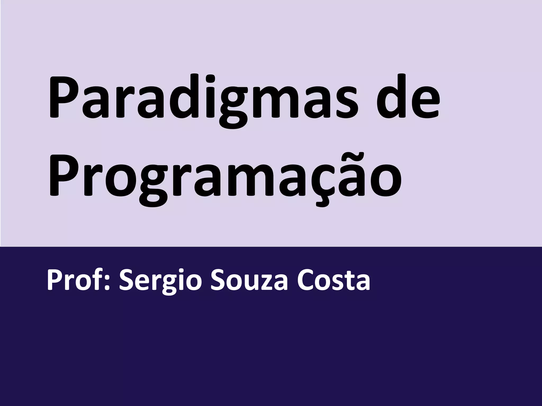 O documento discute paradigmas de programação e apresenta o professor Sérgio Souza Costa. Apresenta conceitos de linguística aplicados ao estudo de linguagens de programação e discute sintaxe, semântica e pragmática. Também aborda os principais paradigmas de programação: procedural, orientado a objetos, funcional e lógico.