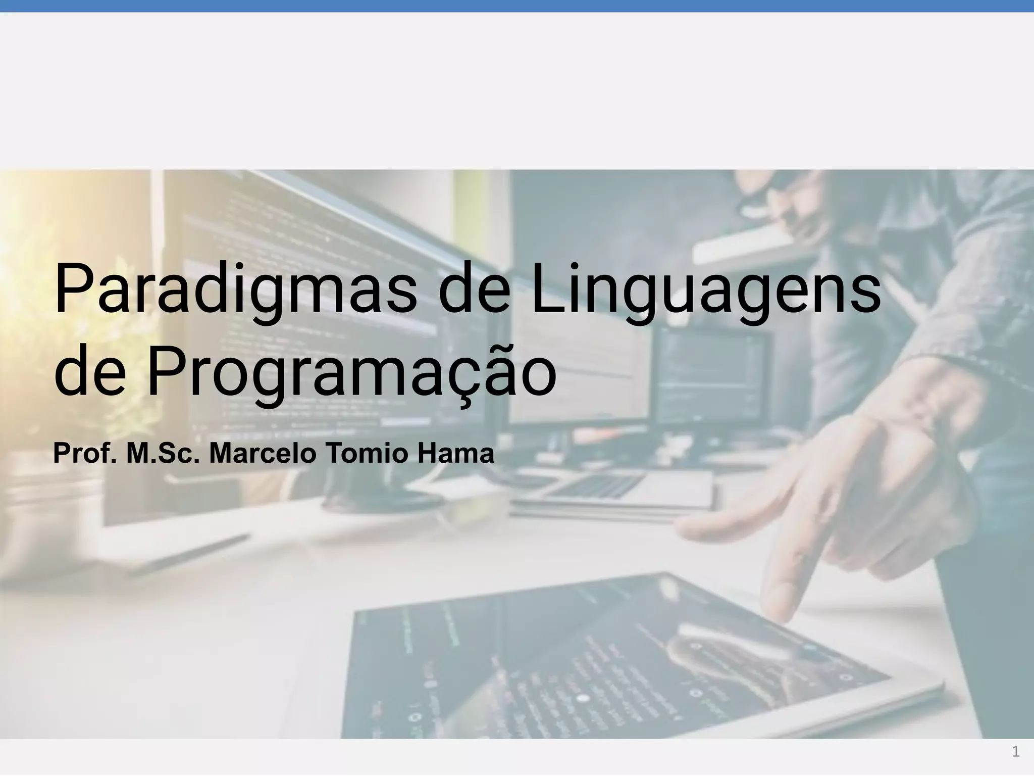 O documento apresenta um curso sobre paradigmas de linguagens de programação ministrado por Marcelo Tomio Hama. O cronograma inclui aulas sobre fundamentos de linguagem de programação, evolução das principais linguagens, paradigmas estruturado, orientado a objetos, funcional e lógico. A bibliografia lista referências básicas e complementares sobre o tema.