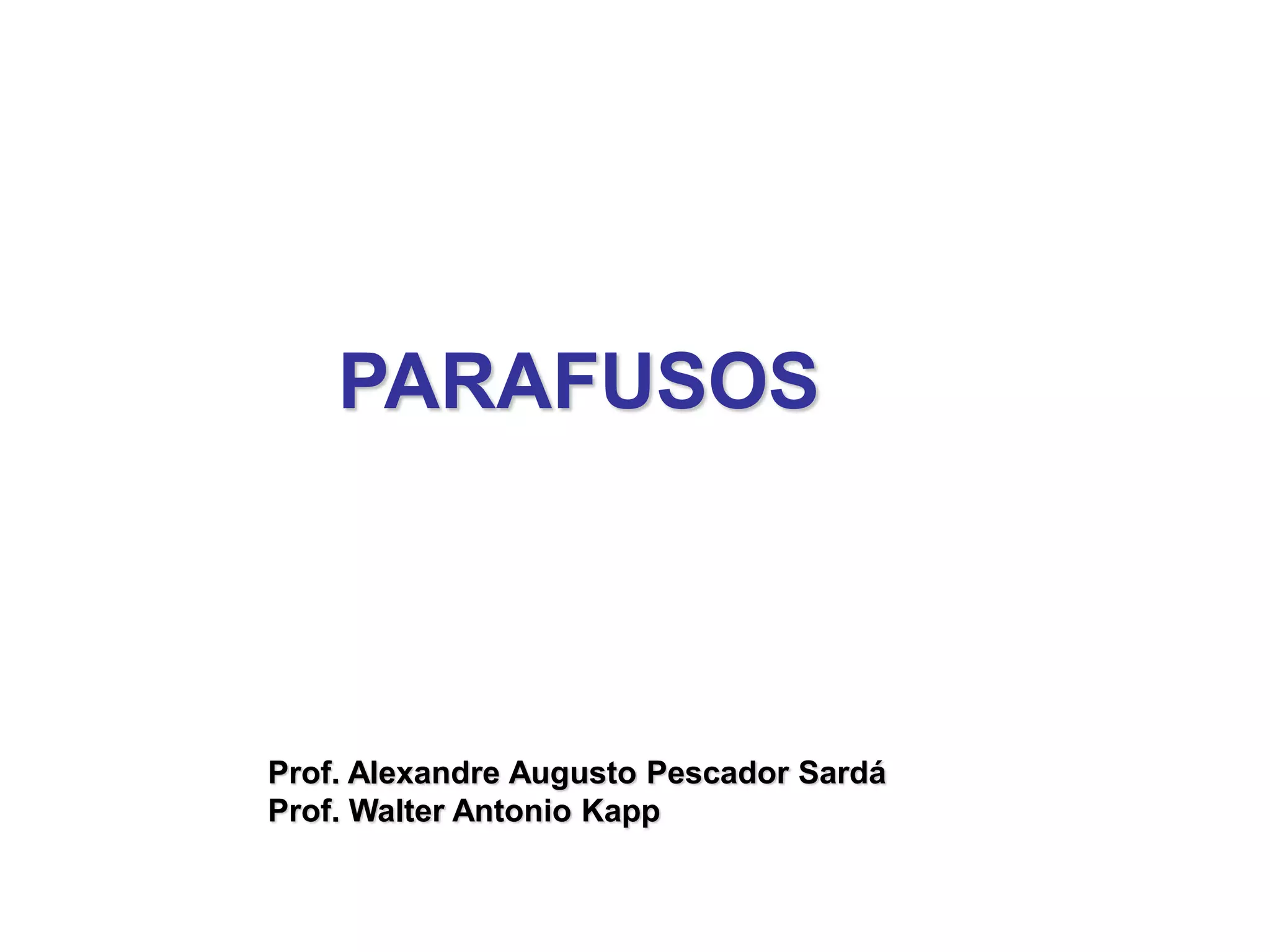 O documento discute parafusos e porcas. Ele explica como a carga é distribuída entre os filetes de um parafuso, com o primeiro filete suportando 38% da carga e os demais filetes recebendo cargas menores e decrescentes. Também apresenta exemplos de exercícios sobre cálculos envolvendo parafusos e porcas, incluindo cálculo de comprimento de rosca, comprimento de agarramento e razão de mola.