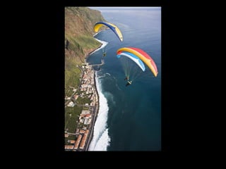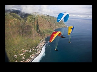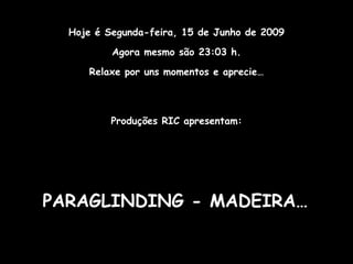 O documento fornece detalhes sobre um voo de parapente na ilha da Madeira em 16 de junho de 2009, incluindo a data, hora e empresa responsável pela atividade.