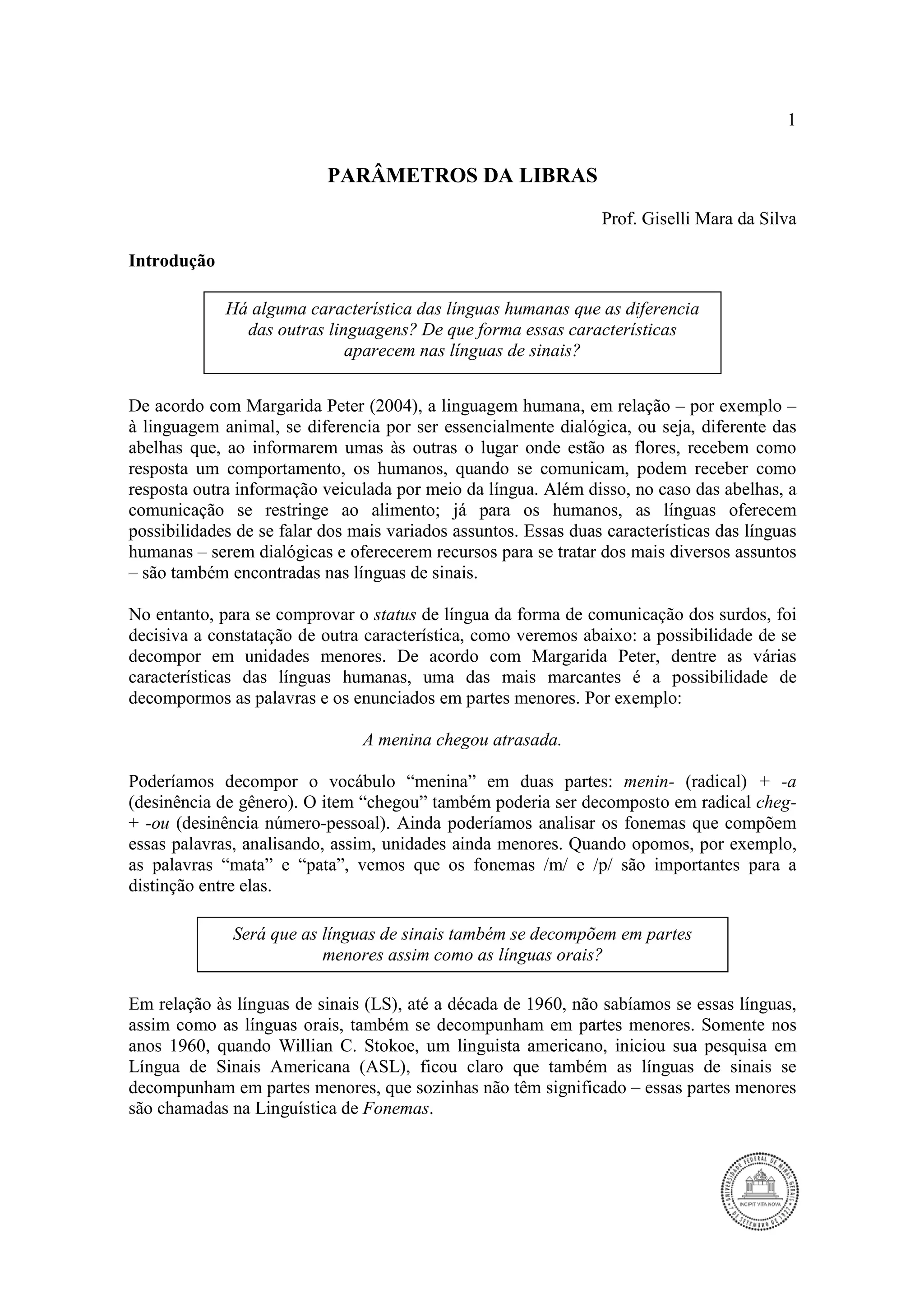 1. As línguas de sinais, assim como as línguas orais, possuem características que as diferenciam das outras formas de comunicação e se decompõem em unidades menores chamadas de fonemas.