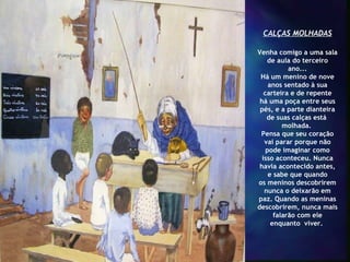 Um menino de 9 anos molha as calças na sala de aula e reza para pedir ajuda a Deus. Uma colega derruba acidentalmente água nele, fazendo com que todos pensem que foi culpa dela. No final do dia, a colega revela que já tinha passado pela mesma situação.