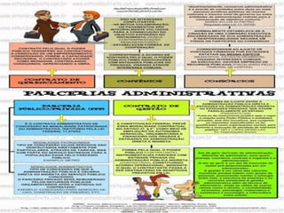 (a) O documento discute o conceito de parceria público-privada (PPP) na legislação brasileira, especialmente a Lei 11.079/04, que estabelece duas modalidades de PPP: concessão patrocinada e concessão administrativa. (b) A concessão patrocinada envolve tarifas pagas pelos usuários e contraprestação do setor público, enquanto a concessão administrativa envolve apenas pagamento público. (c) O documento também discute objetivos, natureza jurídica, forma de contratação
