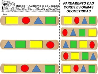 O documento repete a frase "PAREAMENTO DAS CORES E FORMAS GEOMÉTRICAS" várias vezes, sugerindo que trata do assunto de combinar cores e formas geométricas.