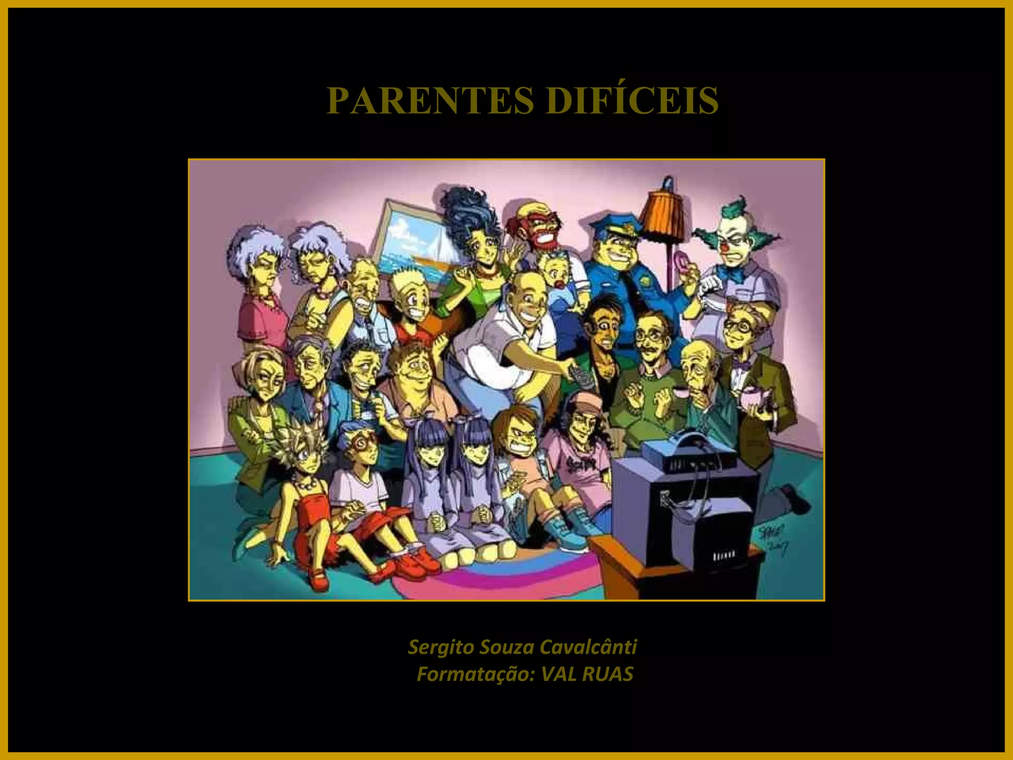 O documento discute a importância de perdoar e compreender os parentes difíceis, mesmo que nem sempre sejam amigos. A reencarnação nos dá a oportunidade de resolver débitos do passado com antigos desafetos que agora estão na família. Devemos exercer a compreensão, paciência e perdão com os parentes, aproveitando a oportunidade de reconciliação.