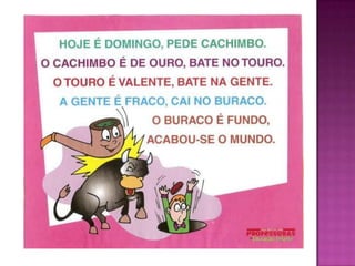 Asparlendas são versinhos infantis com rimas fáceis que são usados em brincadeiras de crianças para melhorar o relacionamento ou diversão. Muitas são antigas e fazem parte do folclore brasileiro, representando uma tradição cultural importante.