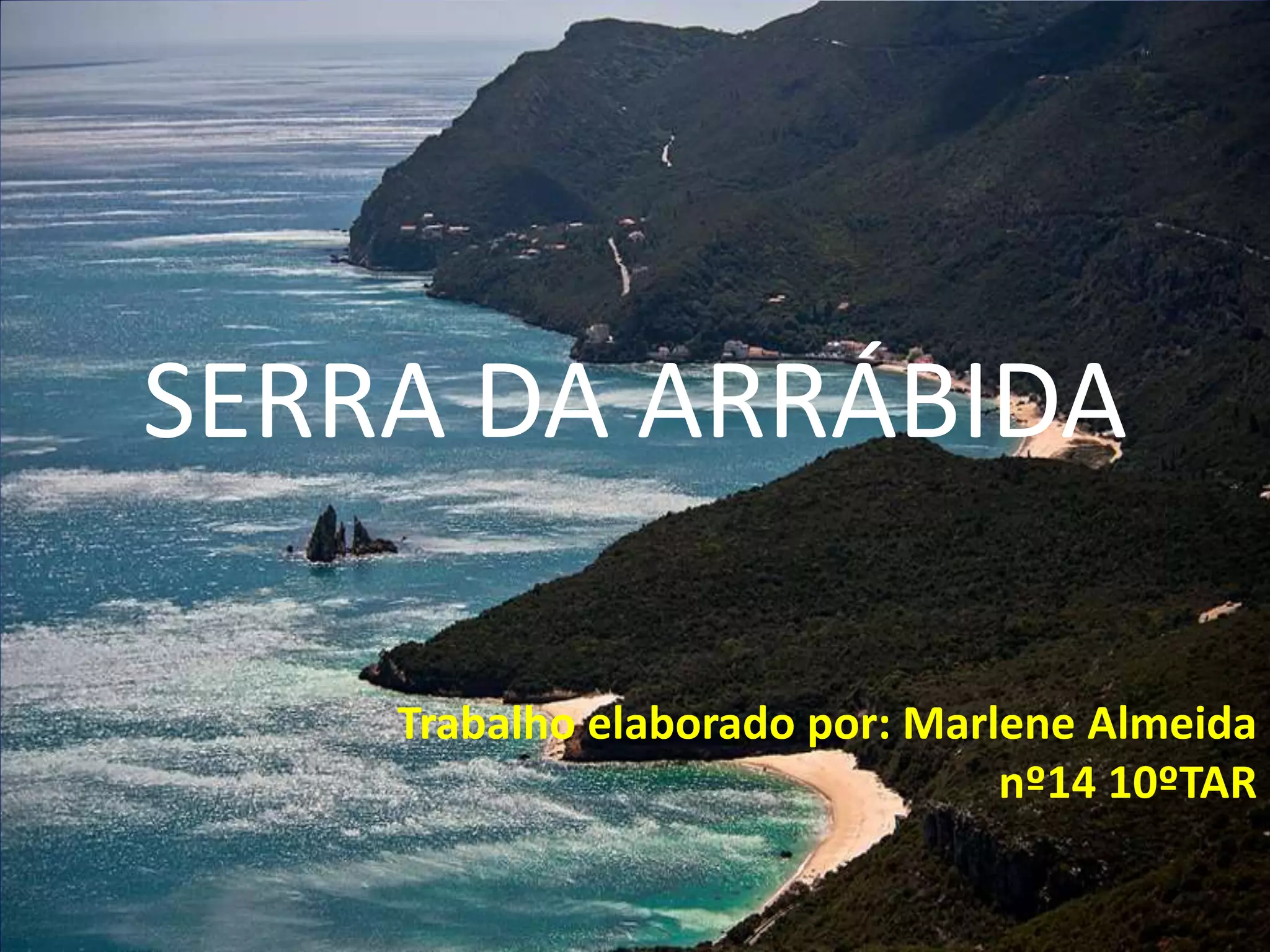 O documento descreve a Serra da Arrábida em Portugal, incluindo sua localização, relevo de calcário, clima temperado mediterrâneo, cursos d'água, 213 espécies de vertebrados como raposas e morcegos, vegetação nativa como carvalhos e ceratonia, habitats como matos litorais e prados calcários, patrimônio cultural como o Convento da Nossa Senhora da Arrábida, e sugestões de atividades como observação de aves e alojamento como o Hotel Há Mar ao Luar.